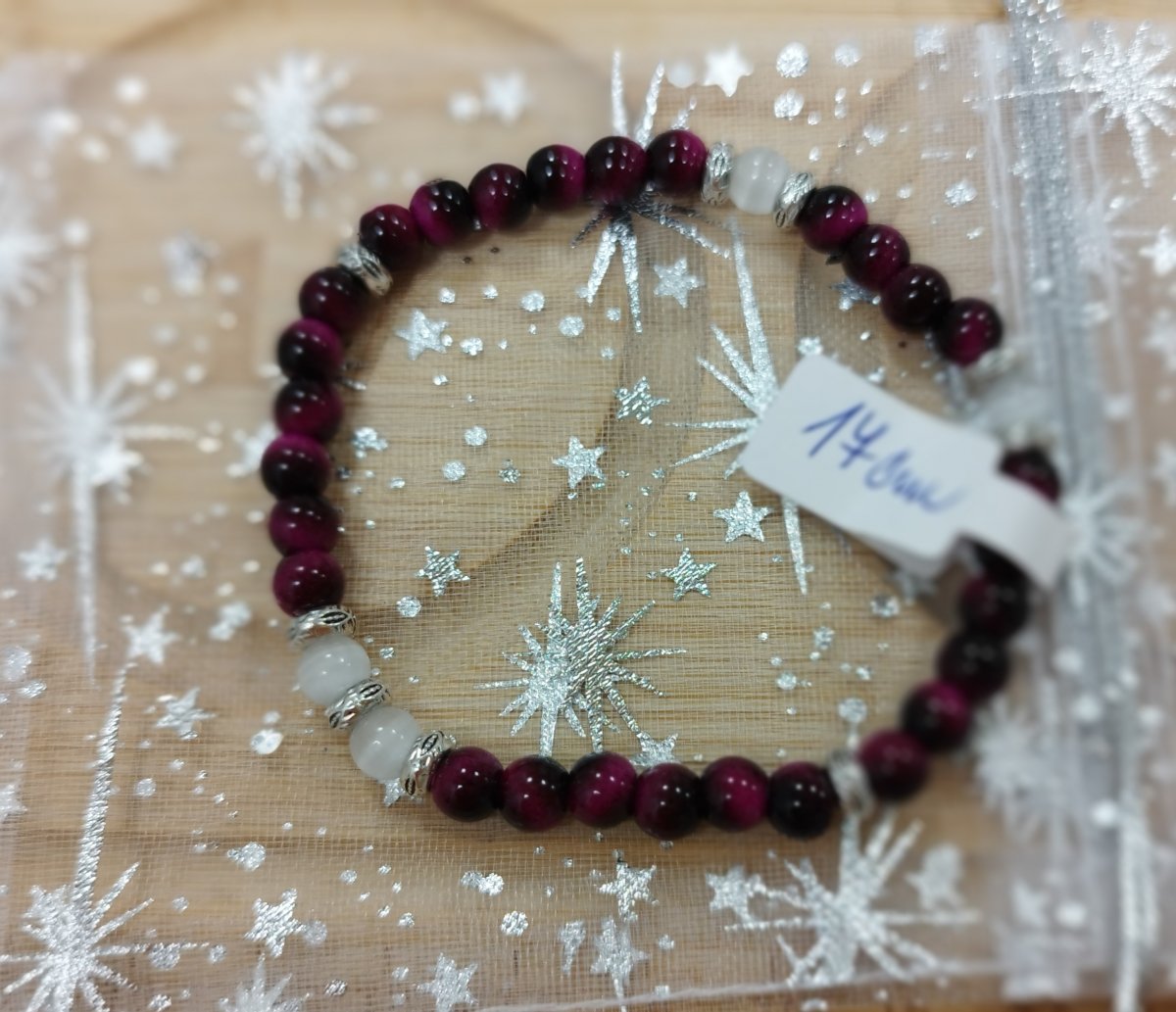 Barva: odstíny velmi tmavé růžové až bordó, kombinace s bílou, kovové komponenty z bižuterního kovu
