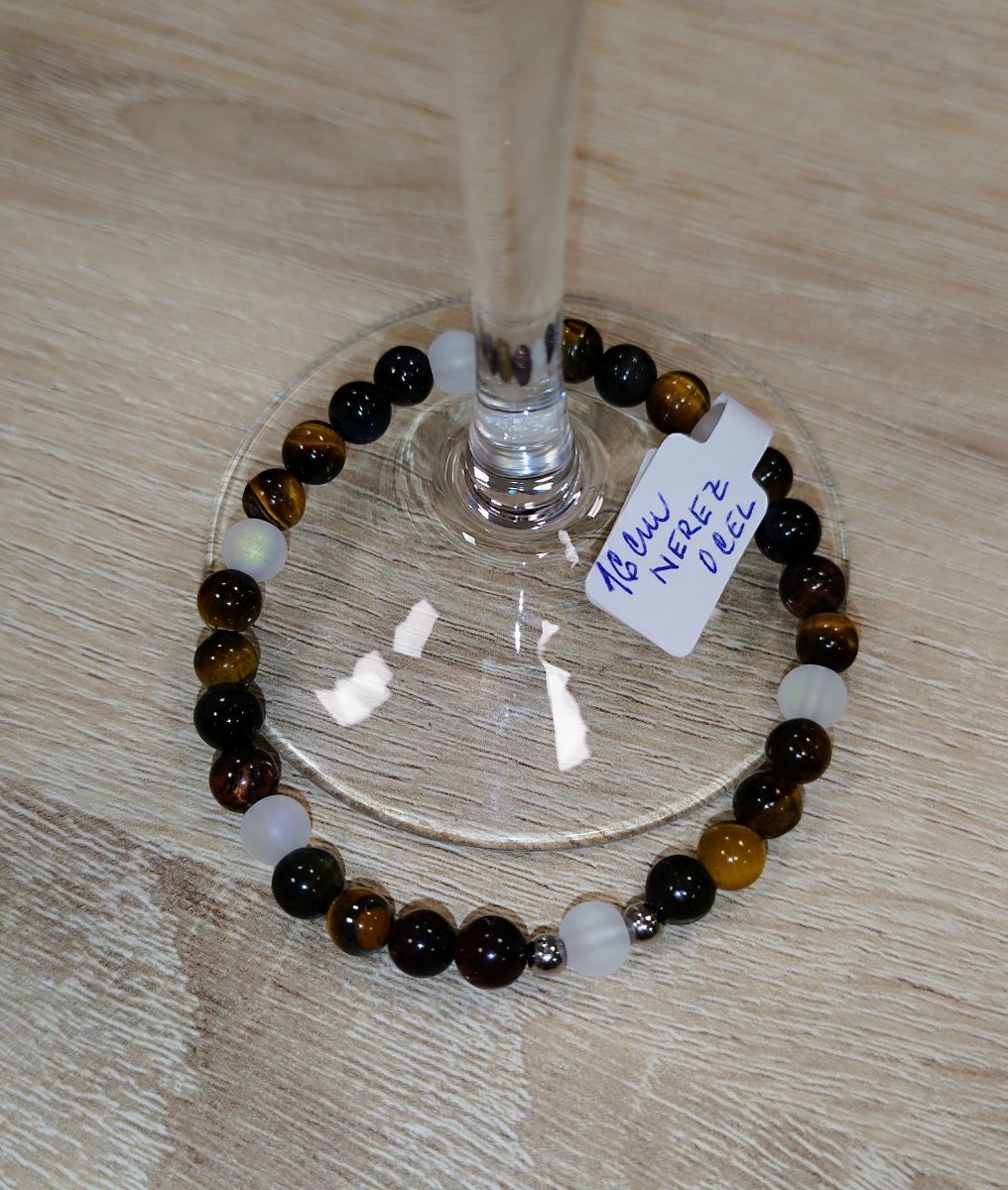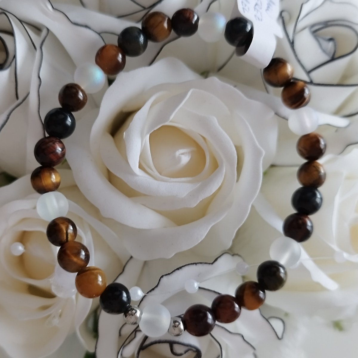 Barva: kombinace duhové hmědé a matné bílé, kovové korálky nerez ocel