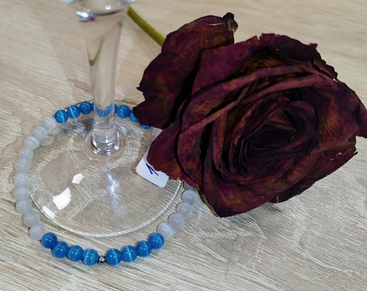 Barva: kombinace modrobílá , kovový korálek nerez ocel