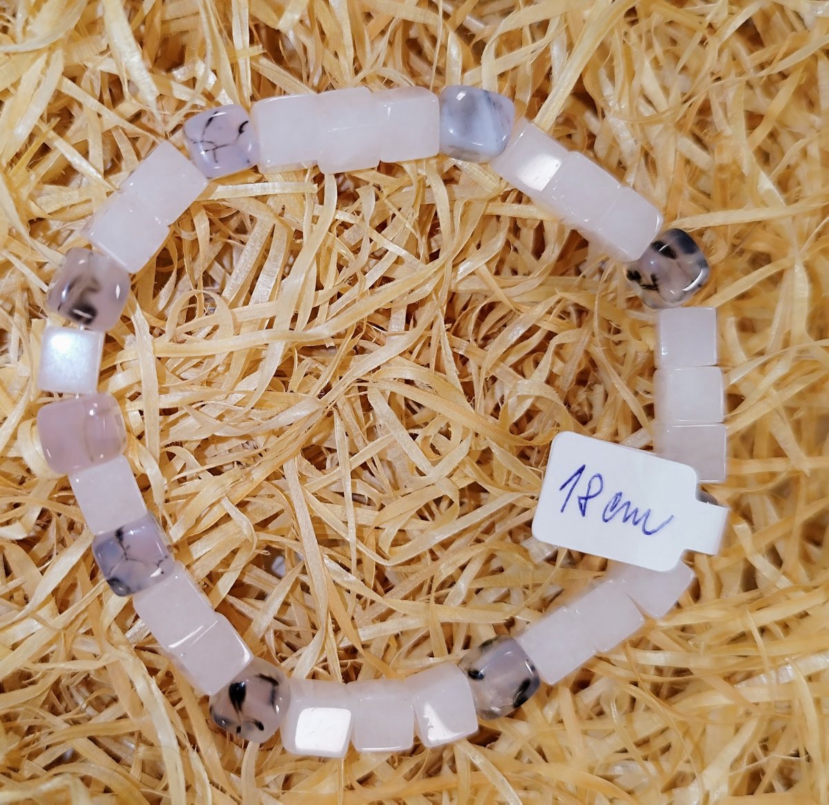 Netradiční pružný náramek ze skleněných korálků ve tvaru kostiček na širší zápěstí