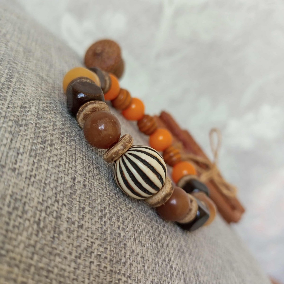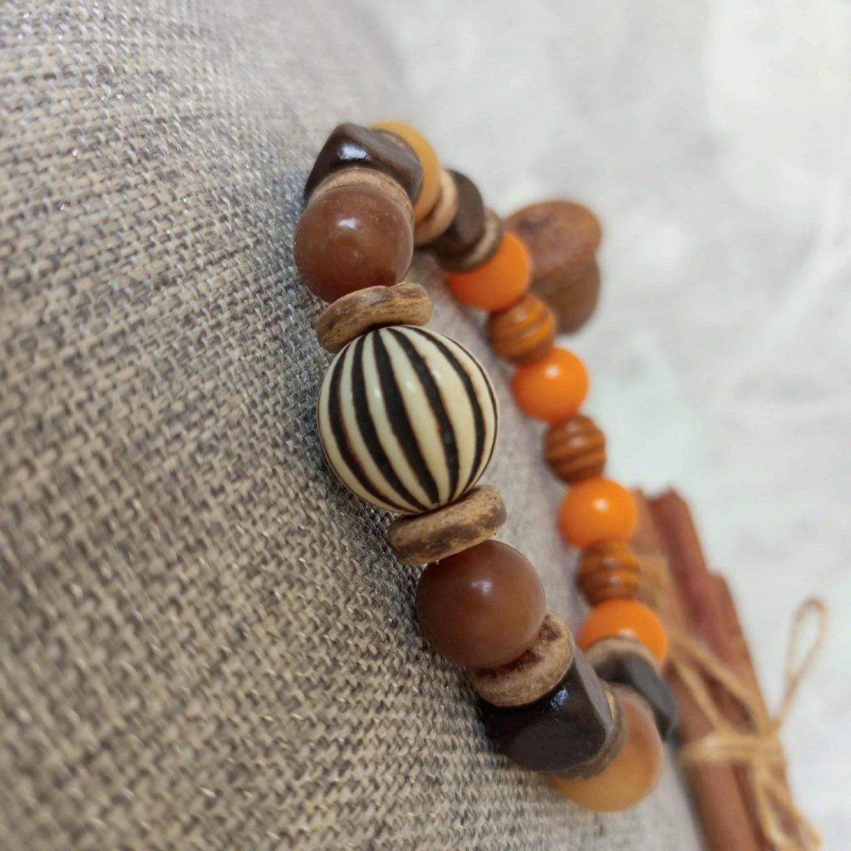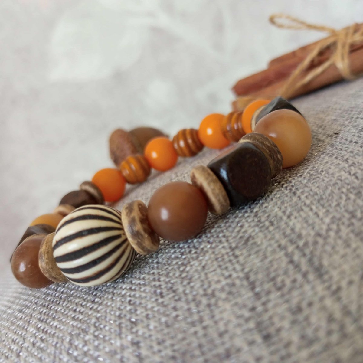 Náremek z korálků z kořene Bodhi 10mm ,rondelek z kokosových skořápek , dřevěných korálek a akrylové velké korálky.
