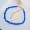 Krásně vybarvený přírodní broušený modrý křemen o průměru 3 mm se zapínáním na karabinku doplněný o prodlužovací řetízek.