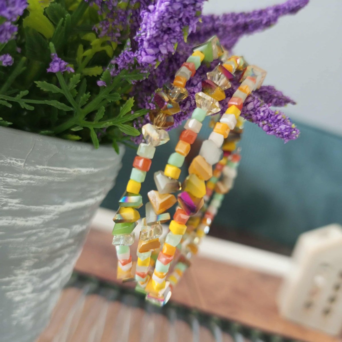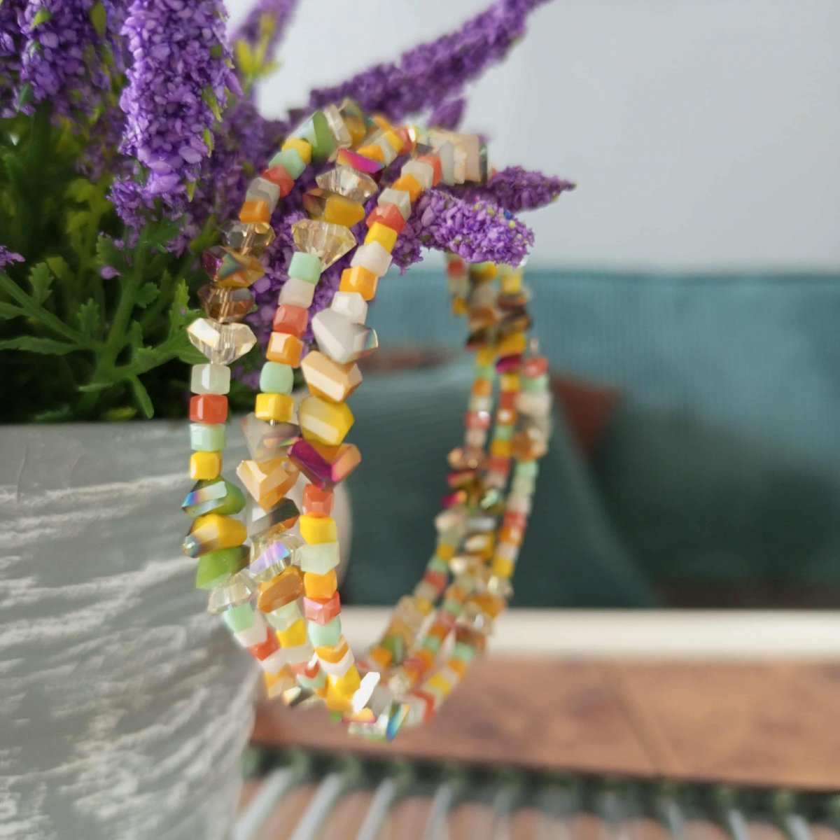 Náramek je ze skleněných kostiček 2mm a skleněných tromlovaných úlomků cca 3mm
