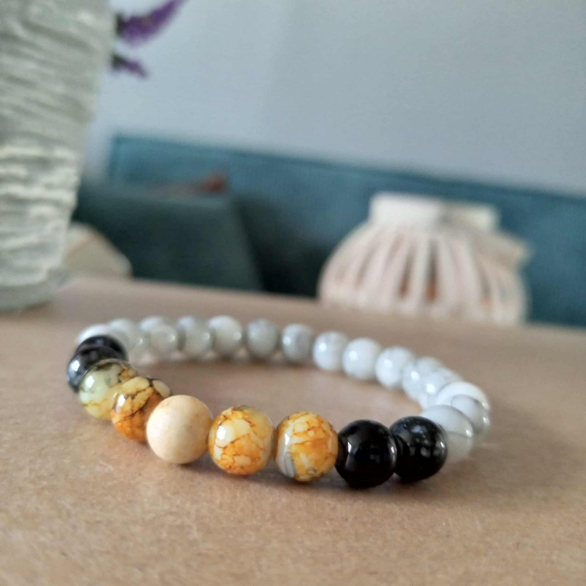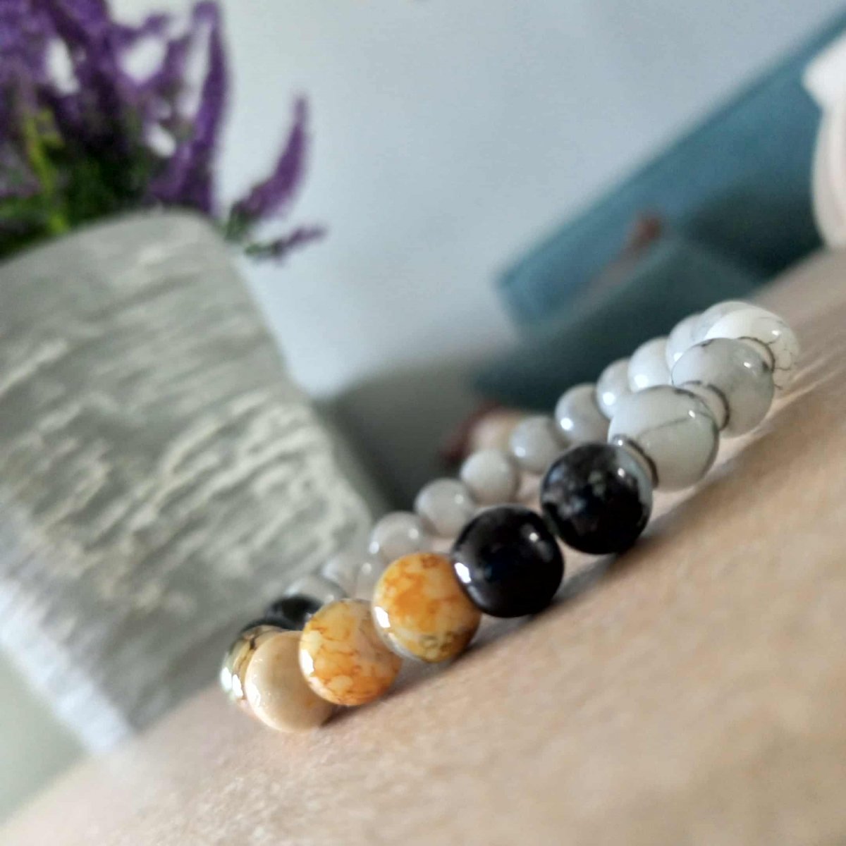Náramek ze skleněných korálek 8mm , doplněný jedním korálkem magnezitu.