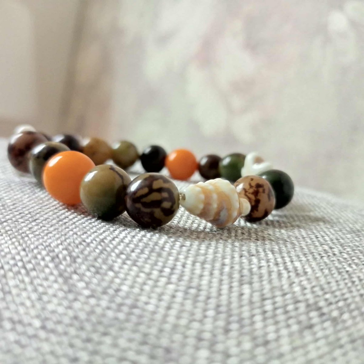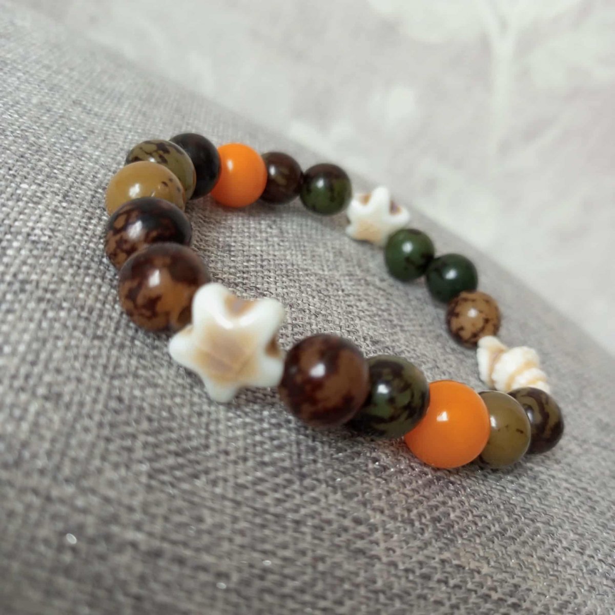 Náremek z korálků z kořene Bodhi . Korálky jsou velké 10mm s keramickými doplňky.