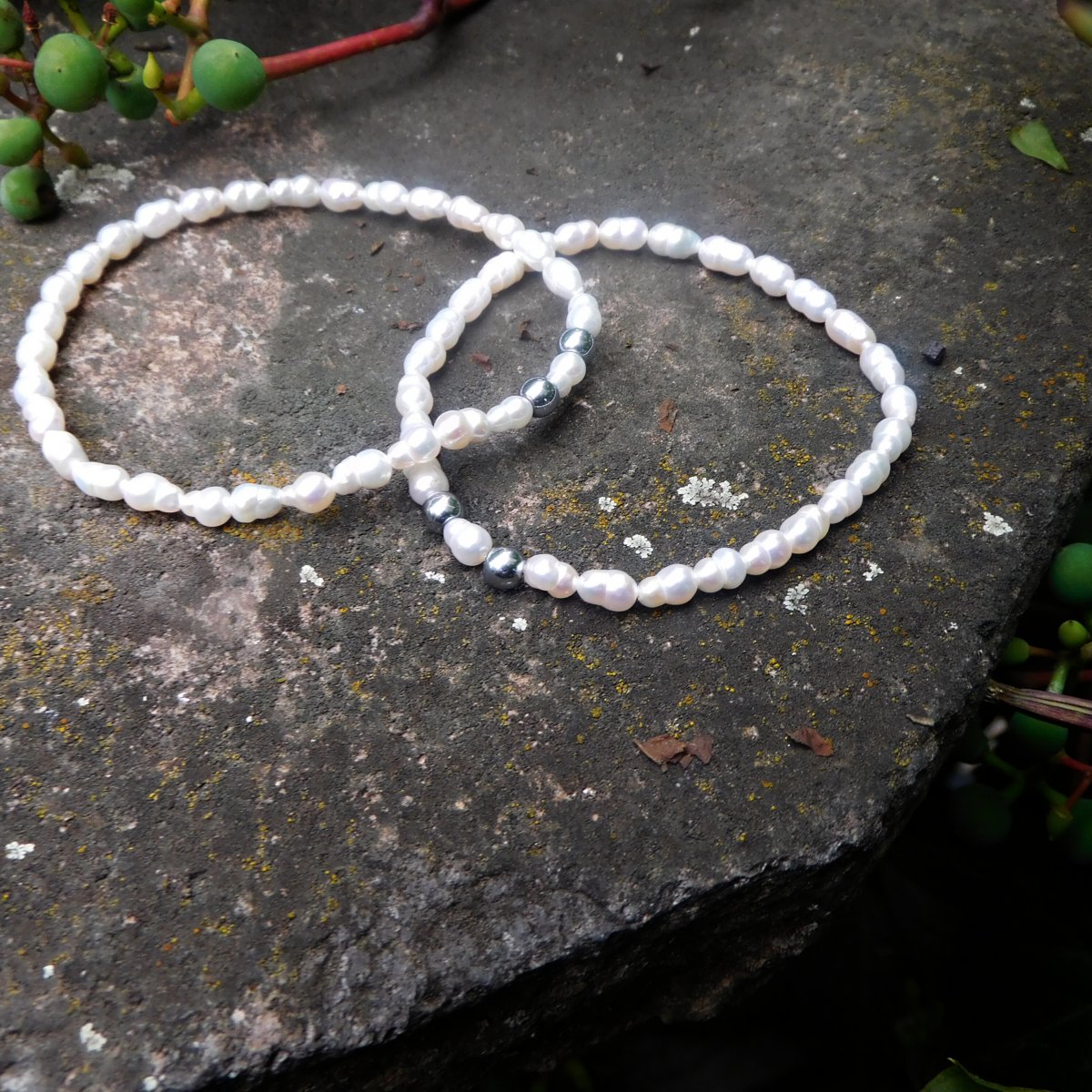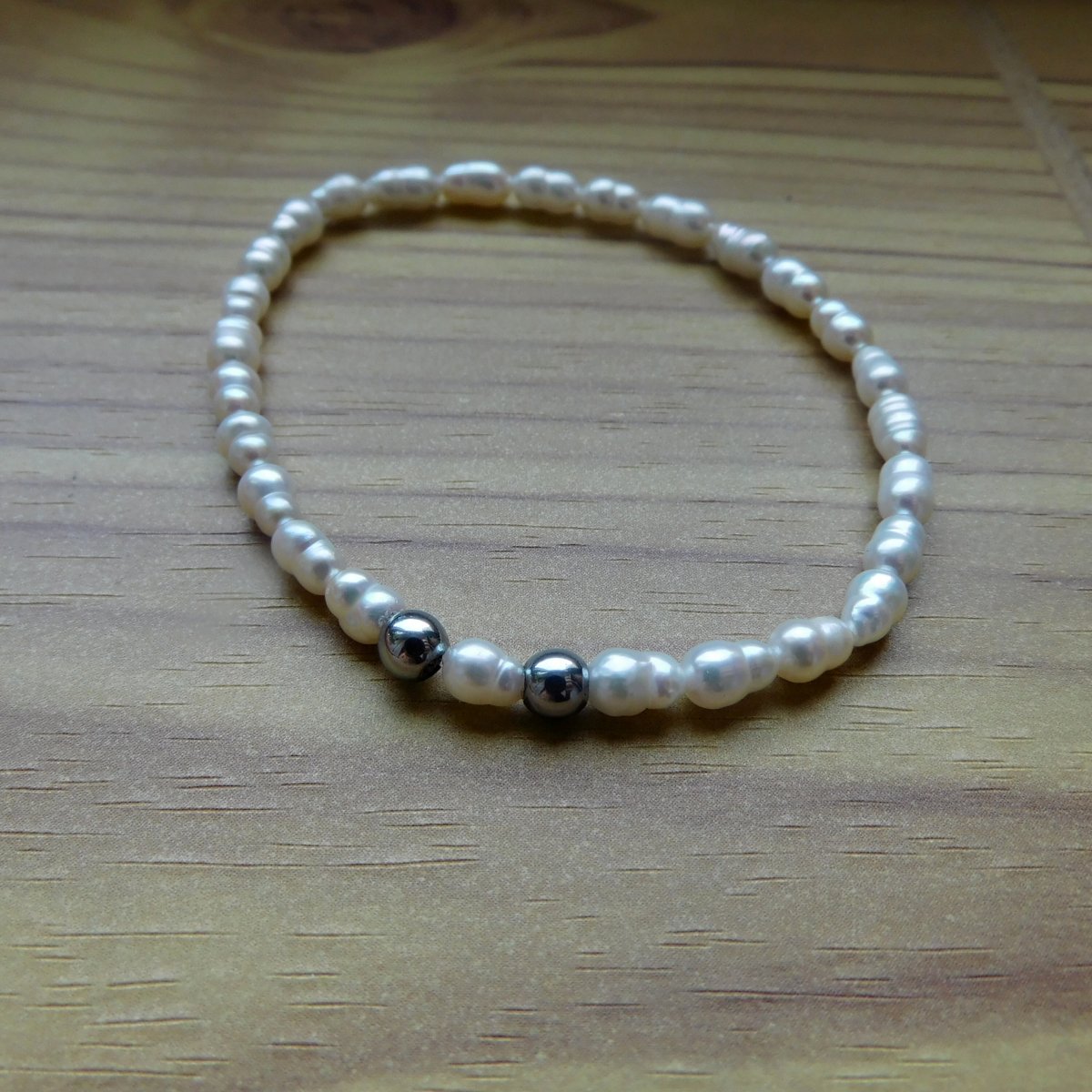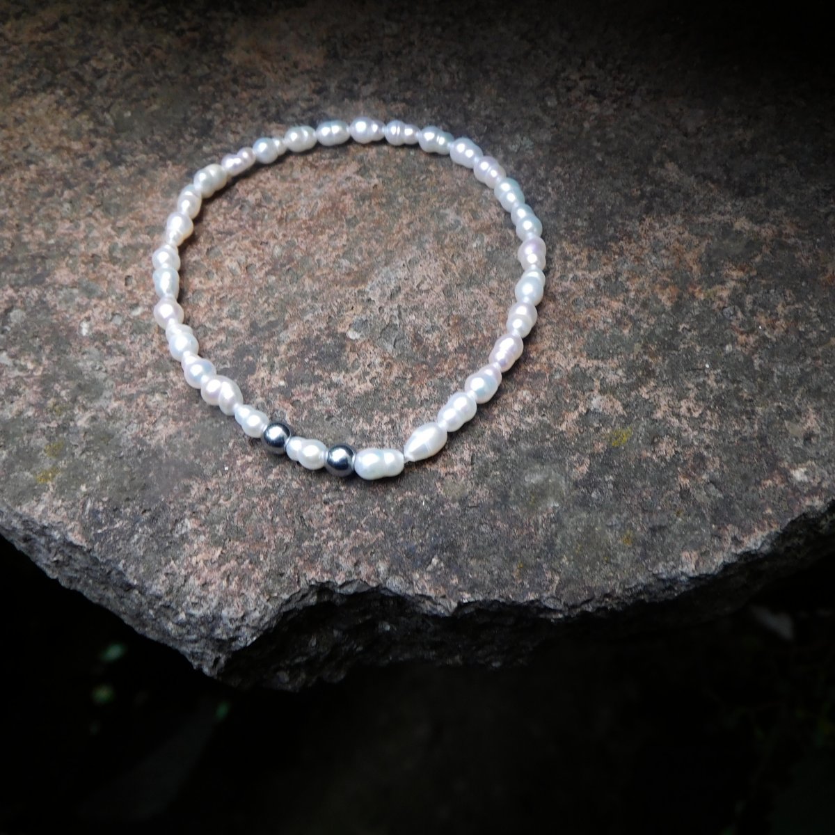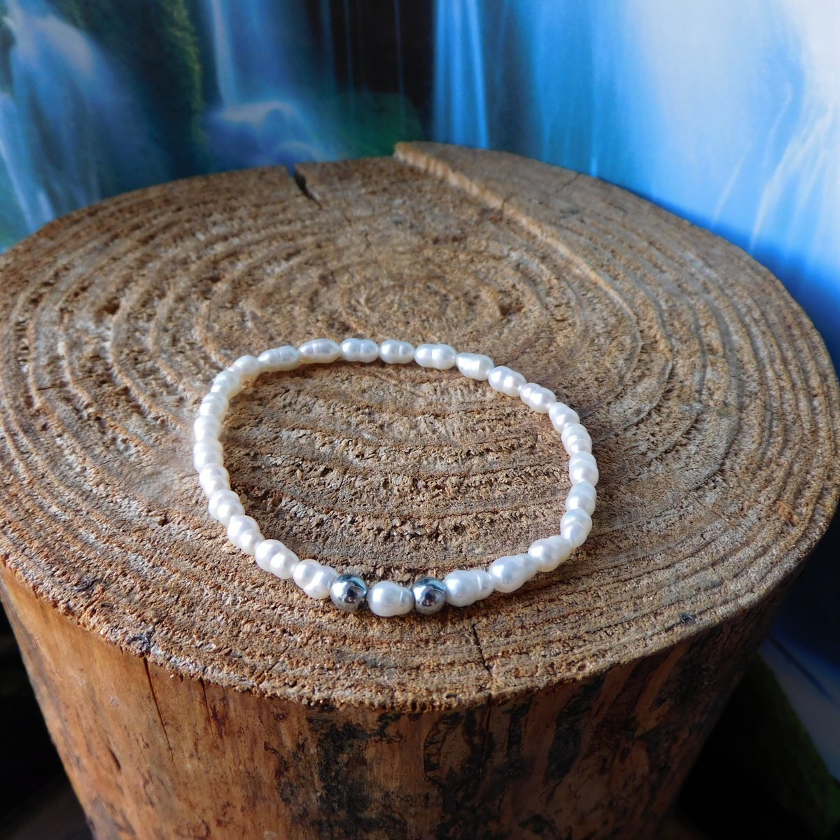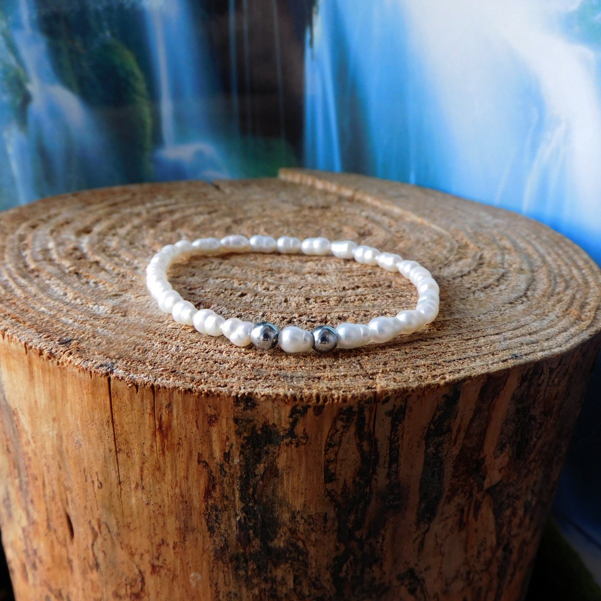 Náramek vyrobený z malých nepravidelných bilých říčních perliček - oválků, velmi pěkné ....