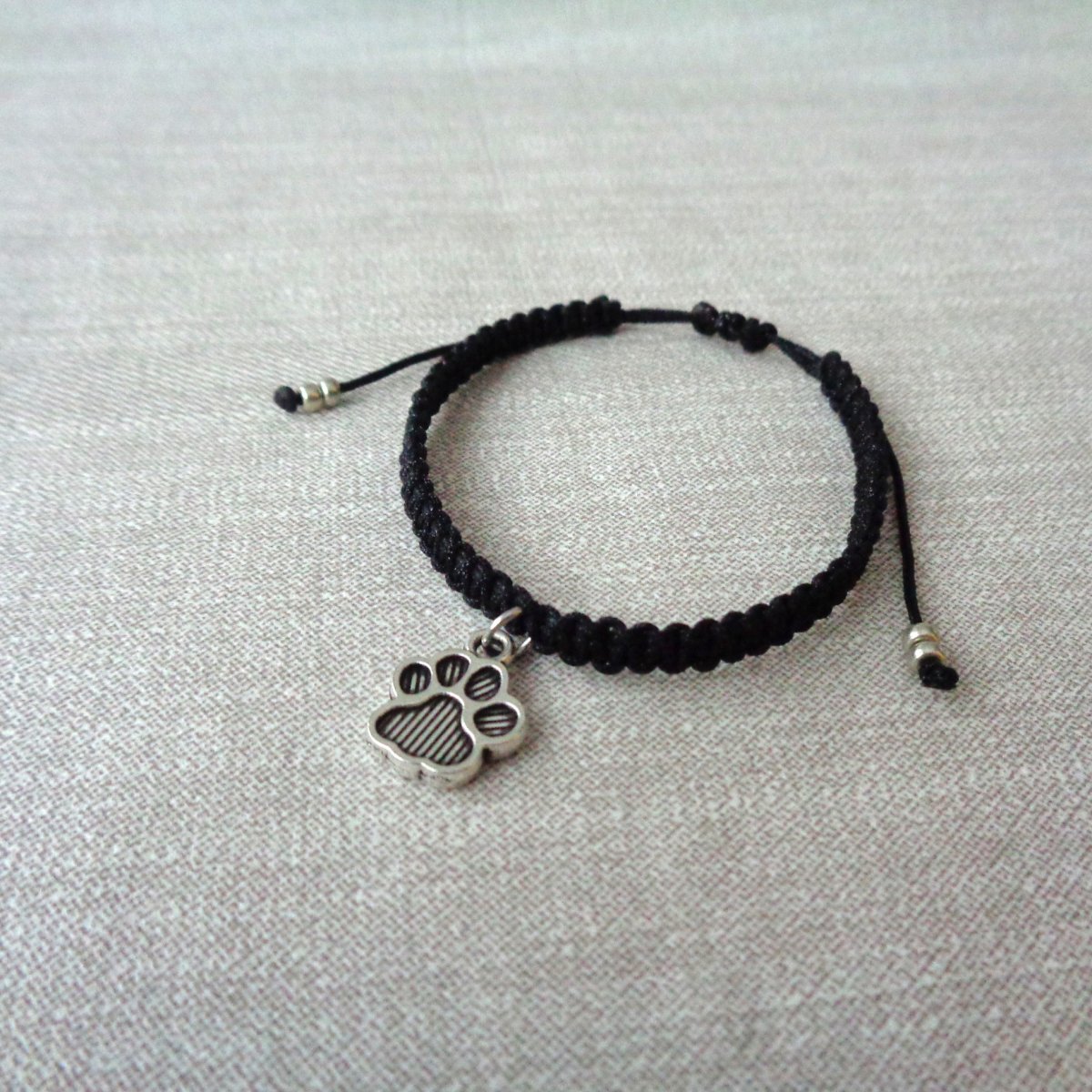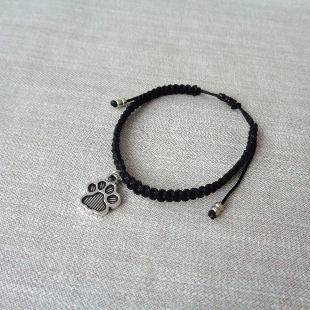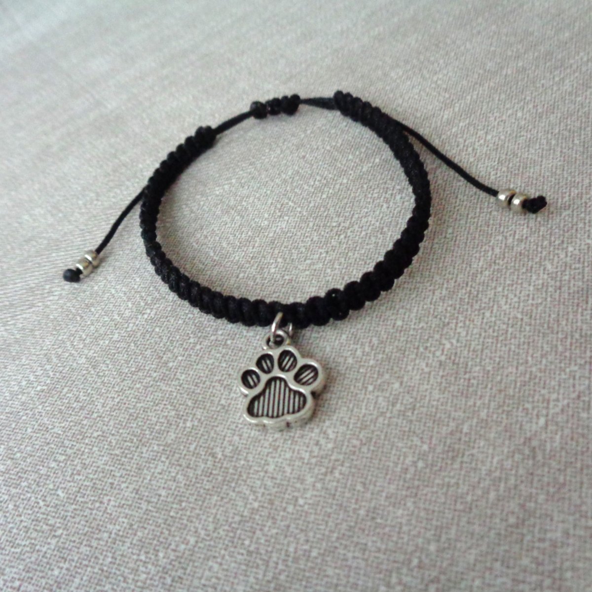 ... shamballa náramek z černé nylonové šňůrky a přívěsku - tlapičky ve stříbrné barvě. Doplněný je drobným rokajlem
