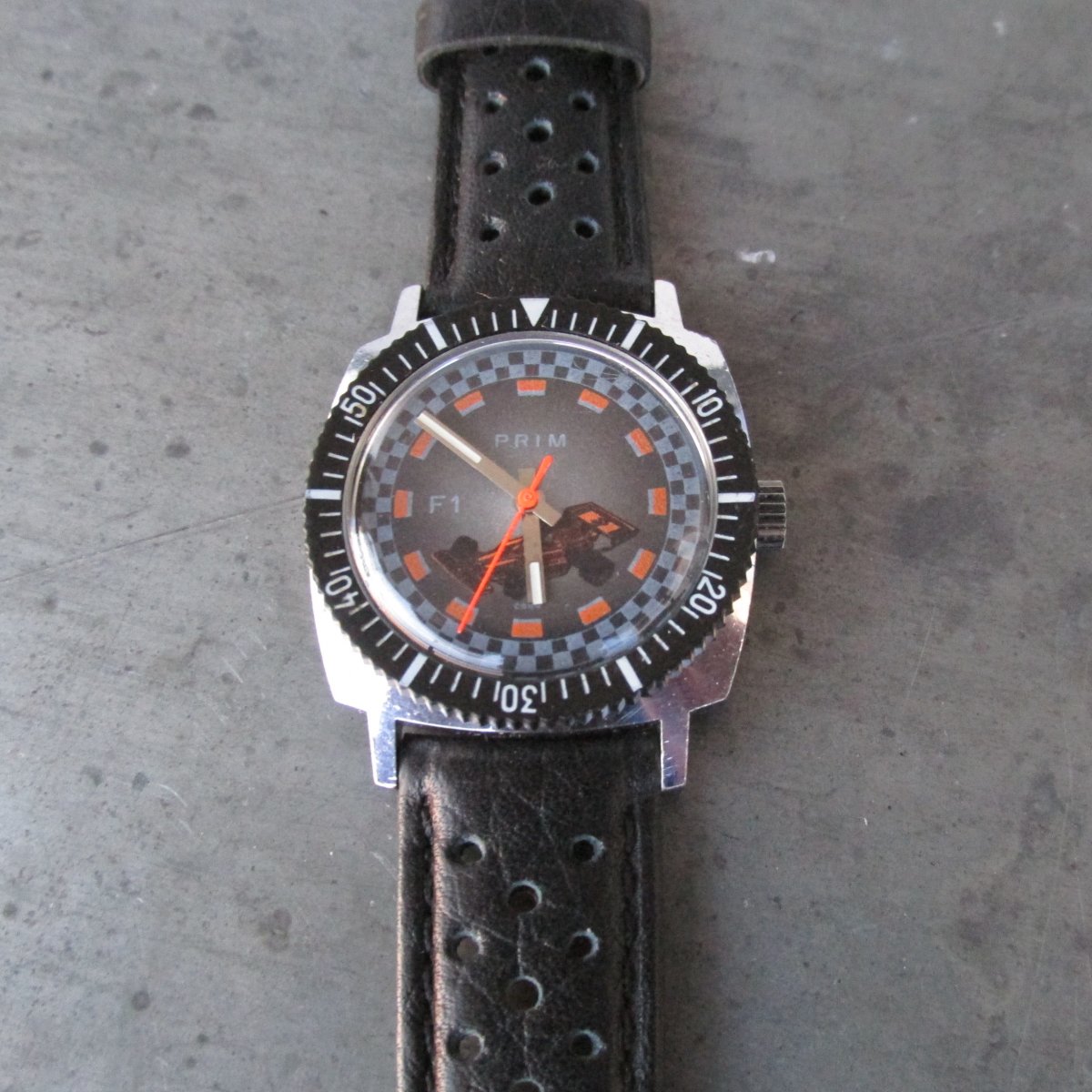 Mechanické retro elegantní hodinky Prim " Sport Formule 1", made in Czechoslovakia.
