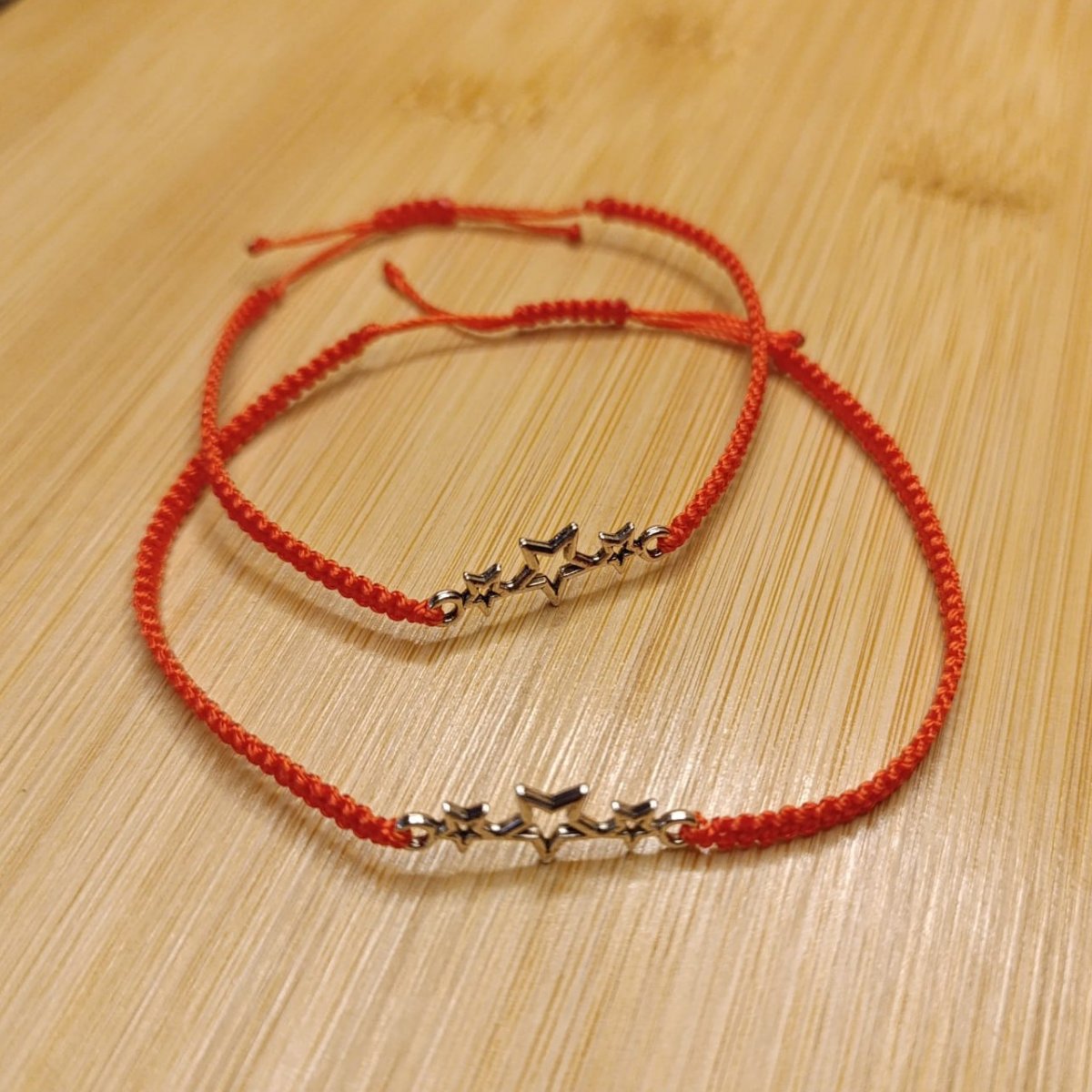 Náramky tkané technikou macramé z C-lonu odstín orange ( oranžová pomerančová), kovové hvězdičky.