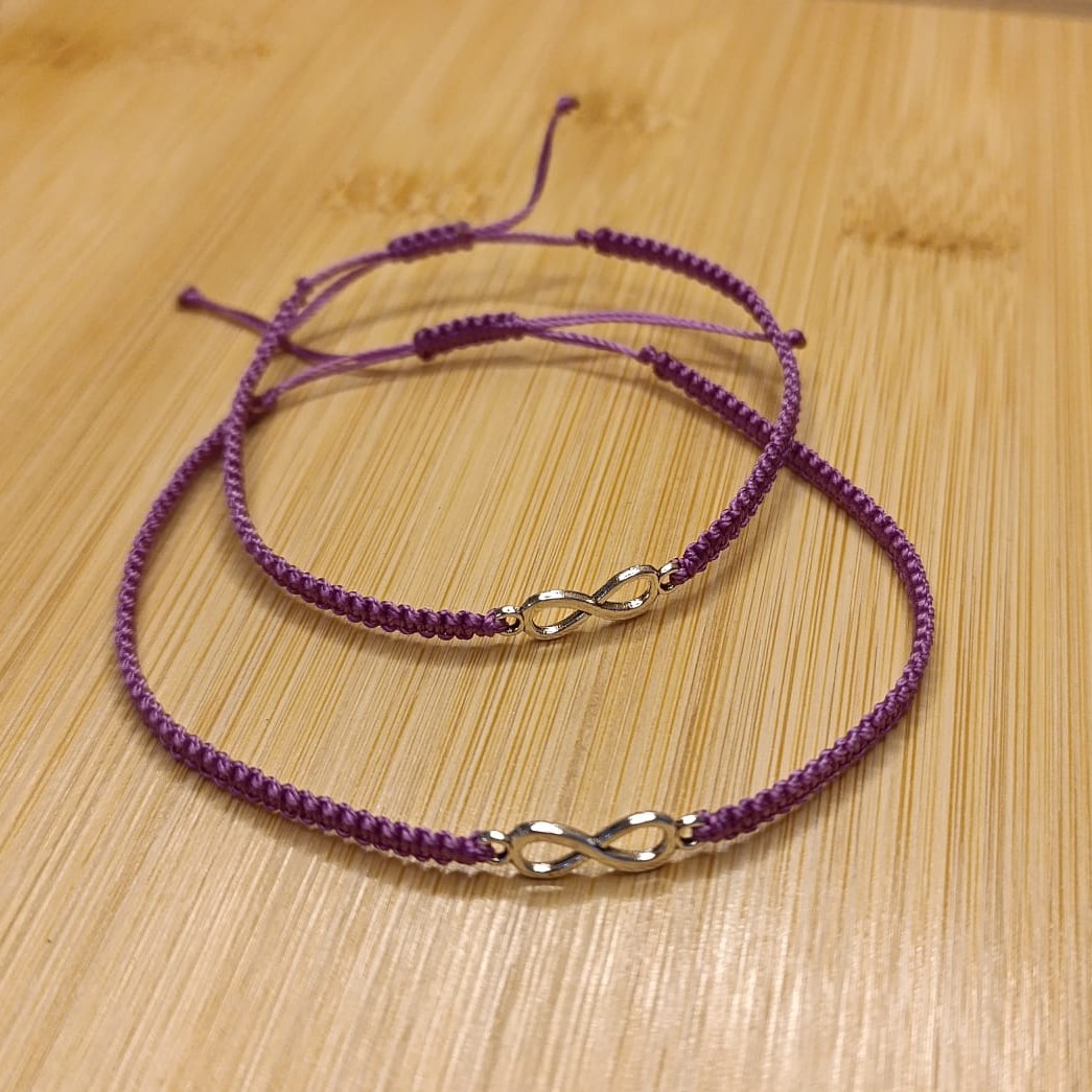 Náramky tkané technikou macramé z C-lonu odstín azelea ( fialková), kovové nekonečno.