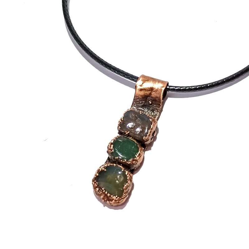Tento šperk vznikl spojením přírody a alchymie. Starodávné kameny a moderní technologie. Šperk vzniká pomalu, vrstva po vrstvě, v procesu trvajícím několik dní. Nesmí se uspěchat. Měď se usazuje jako krystalizující energie – tichá, přesná, magická. Výsledkem je jedinečný artefakt – pevný, a přitom nese křehkost a jemnost původního materiálu.