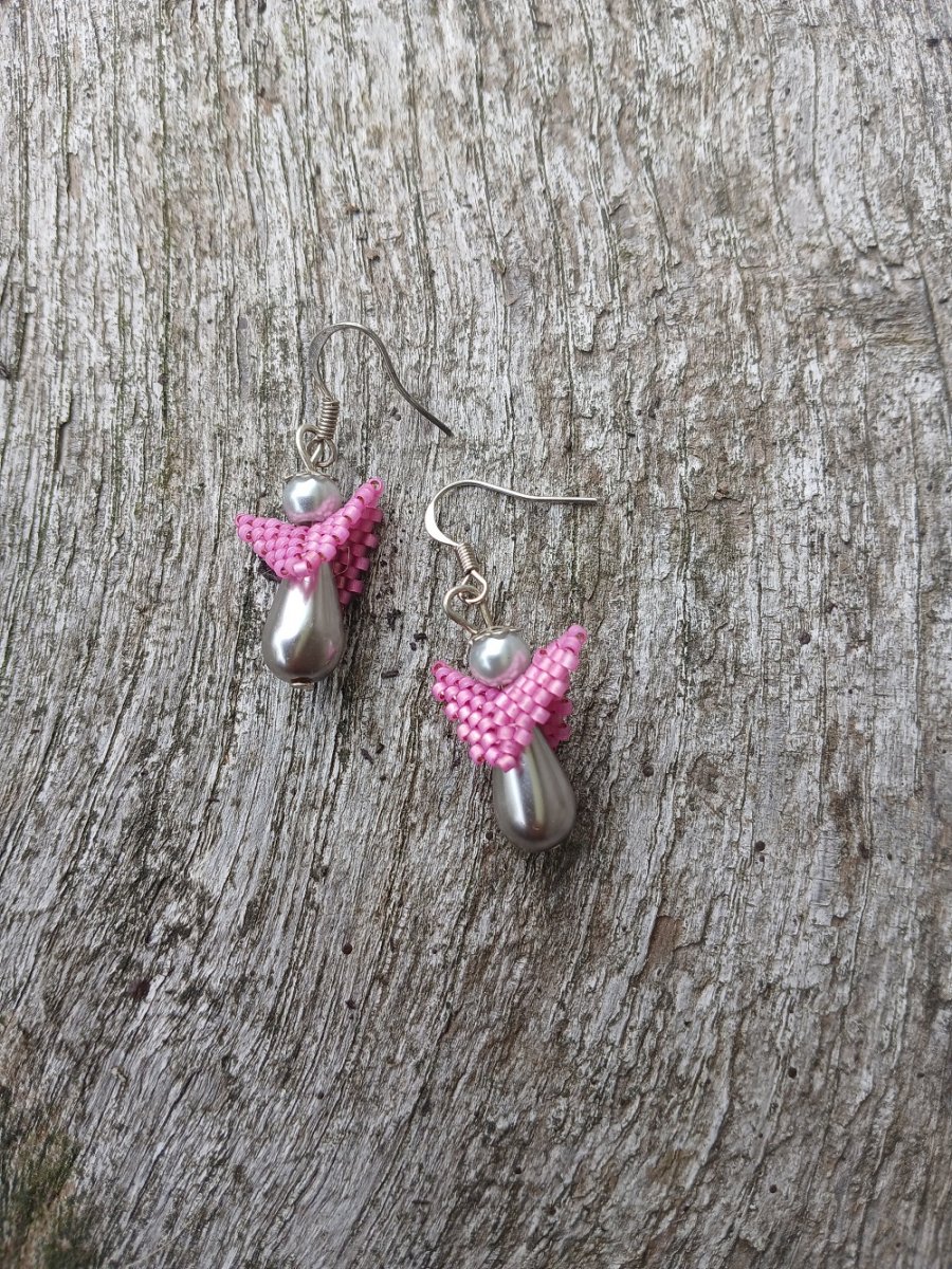 andělské náušnice - vel. 2,5 cm, andílek z perliček s šitými křídly