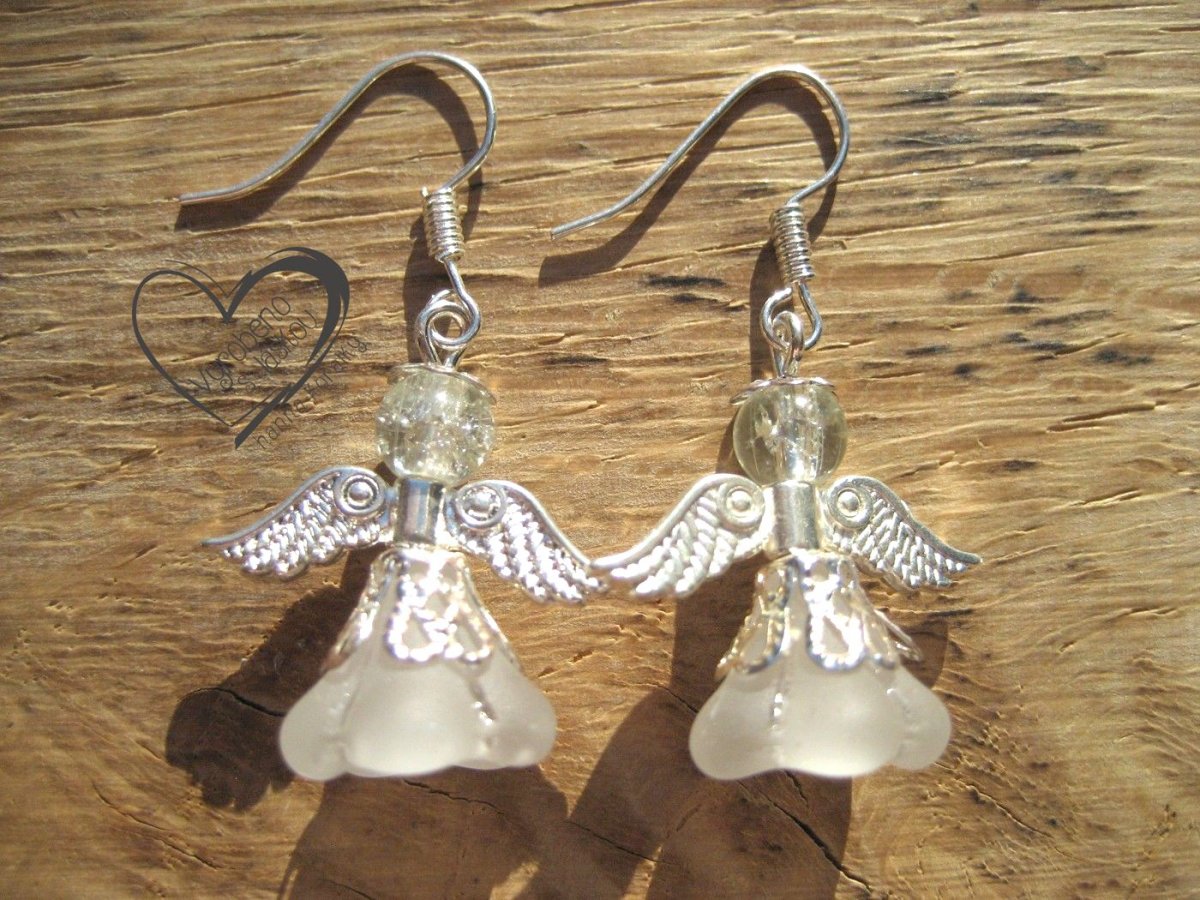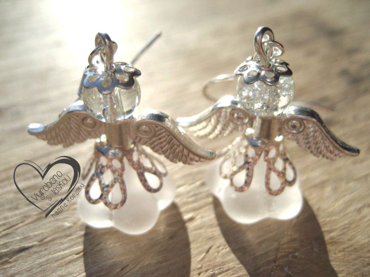 Andělské náušnice - andílci - andělíčci v kombinaci broušeného korálku v barvě - bílé, čiré a stříbrných bižuterních komponentů, délka 2,5 cm + náušnicový háček
