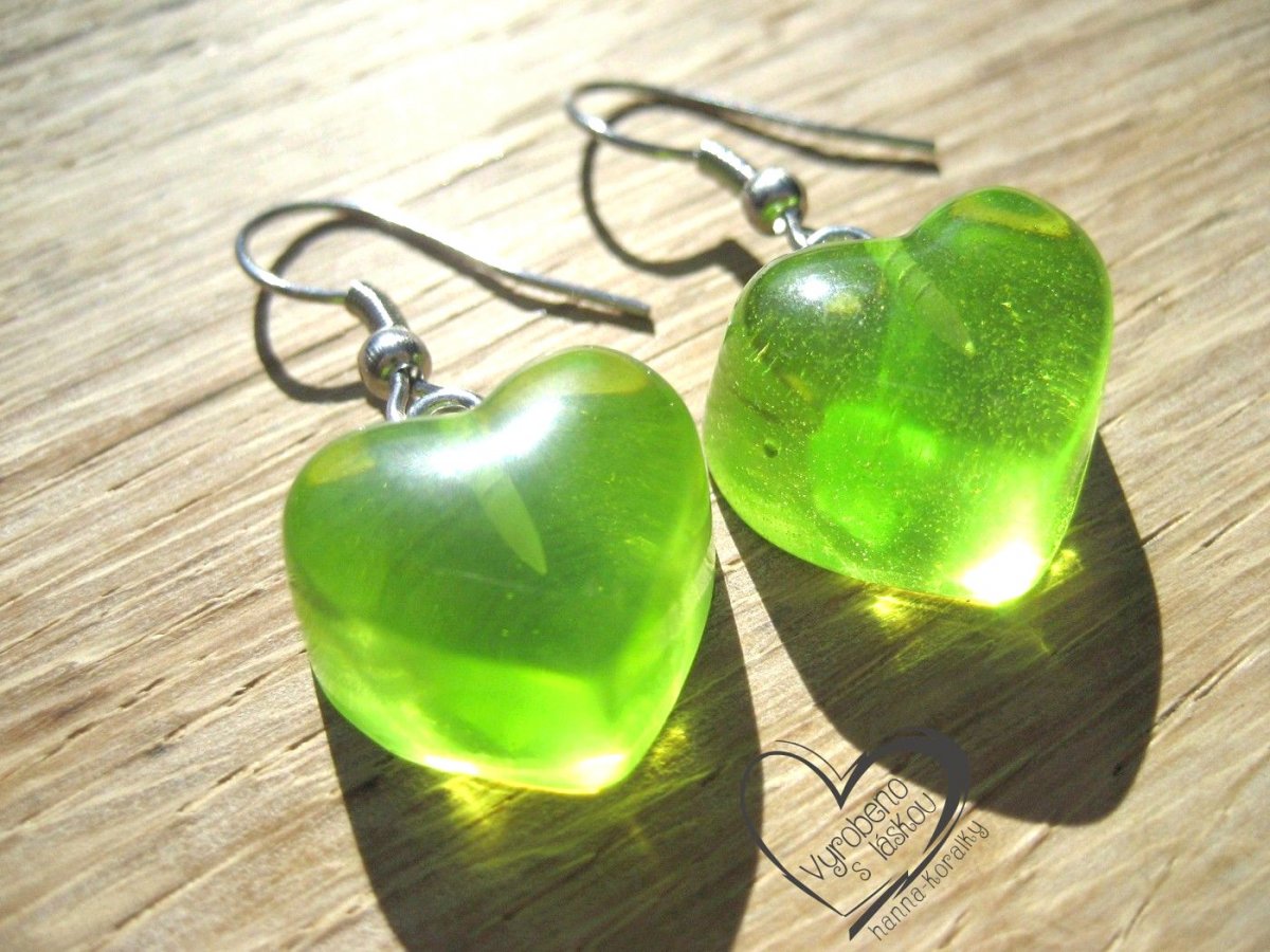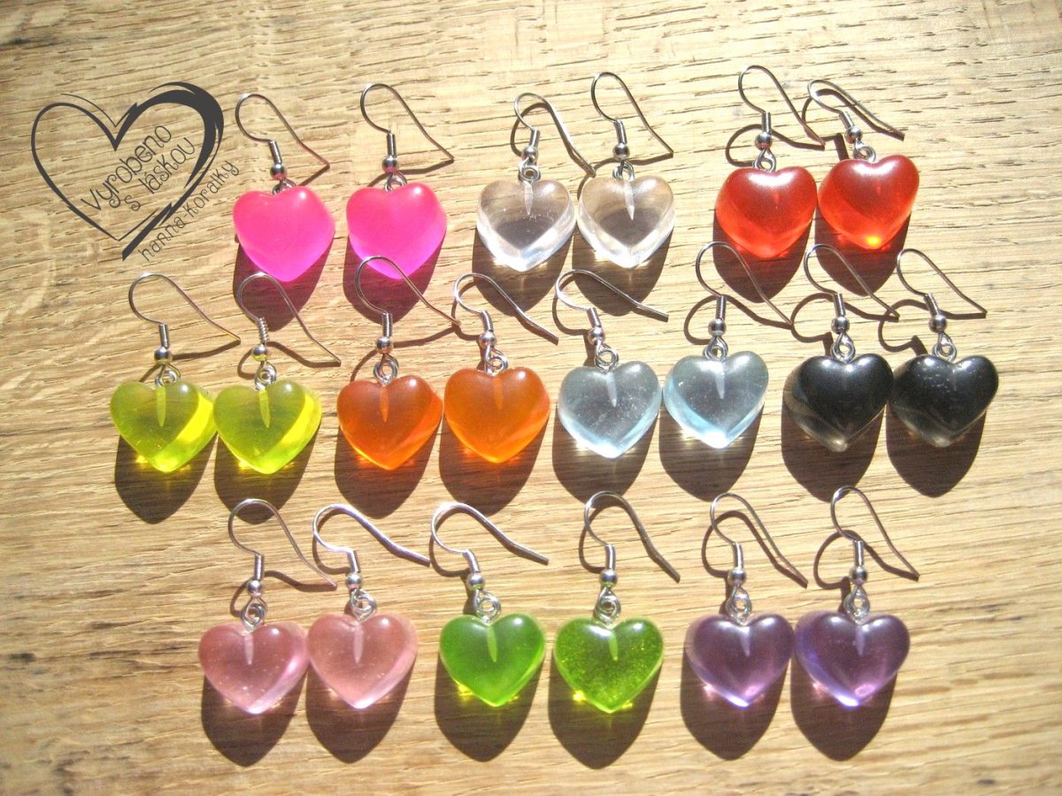 Veselé, hravé náušnice z pryskyřice - srdce - buclaté srdíčka v 10 barvách - jasně růžová, bílá, jasně oranžová, žlutá, oranžová, světle modrá, černá, světle růžová, zelená, fialová - délka náušnic 3,3 cm včetně náuš. háčku z nerez oceli, uvedená cena je za jeden pár náušnic, do poznámky uveďte vybranou barvu
