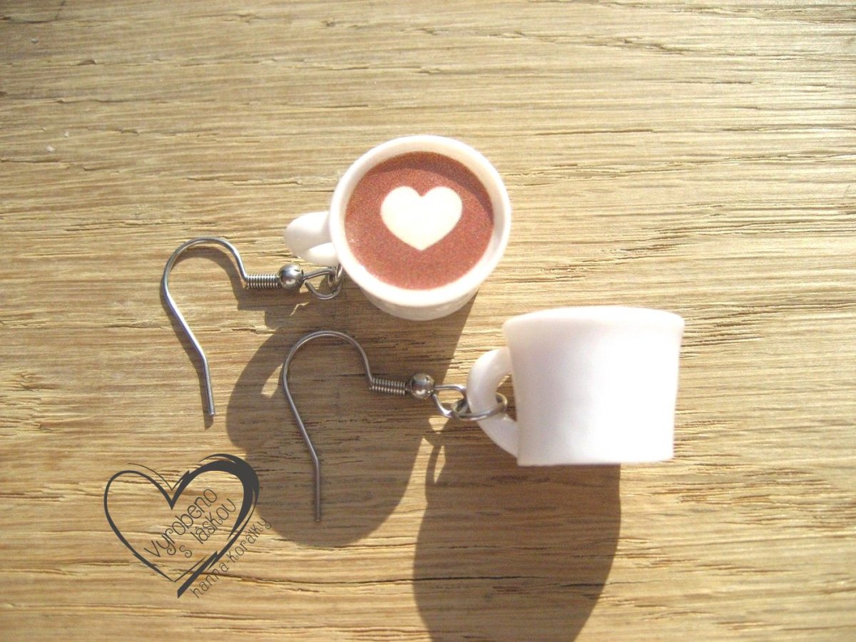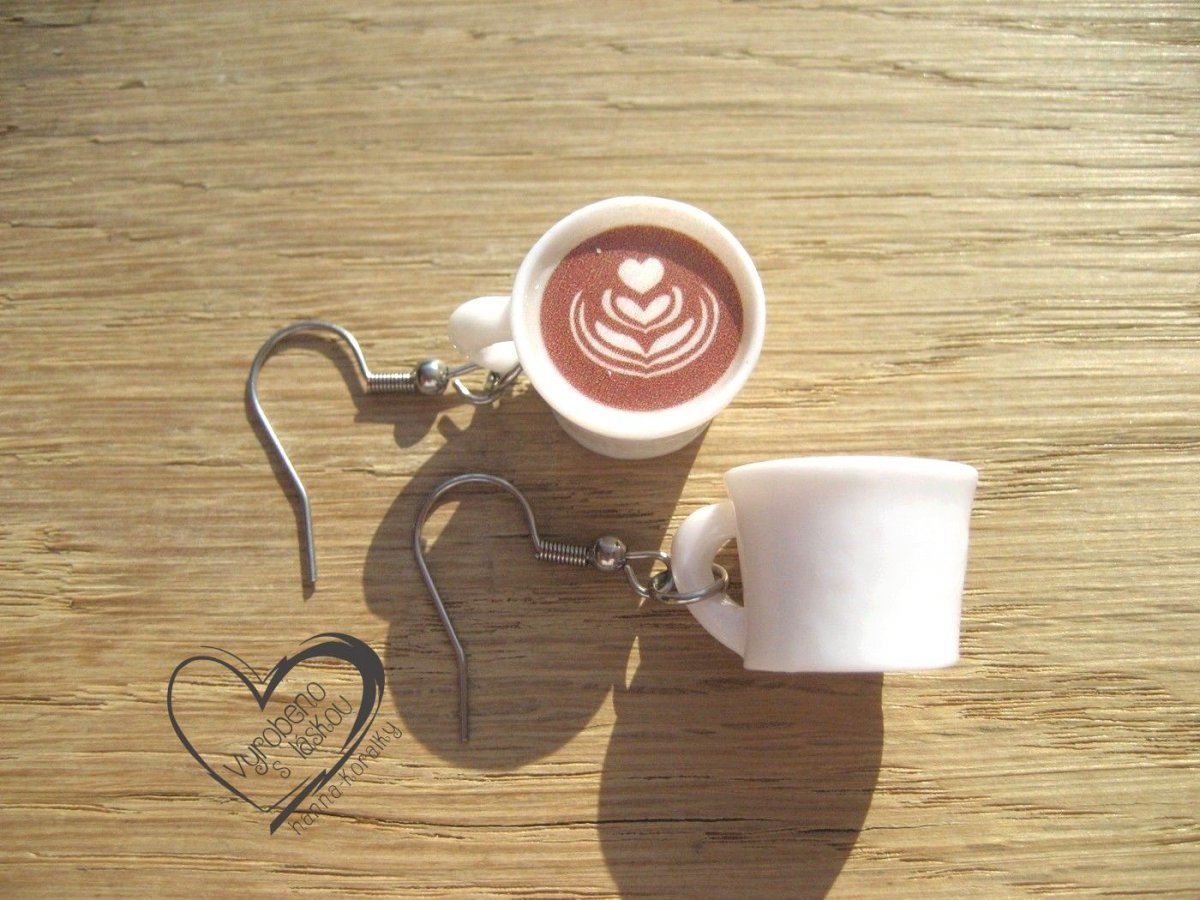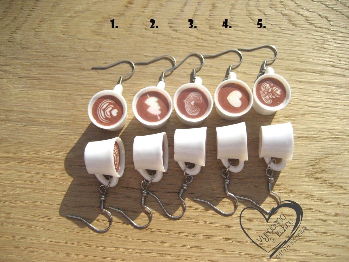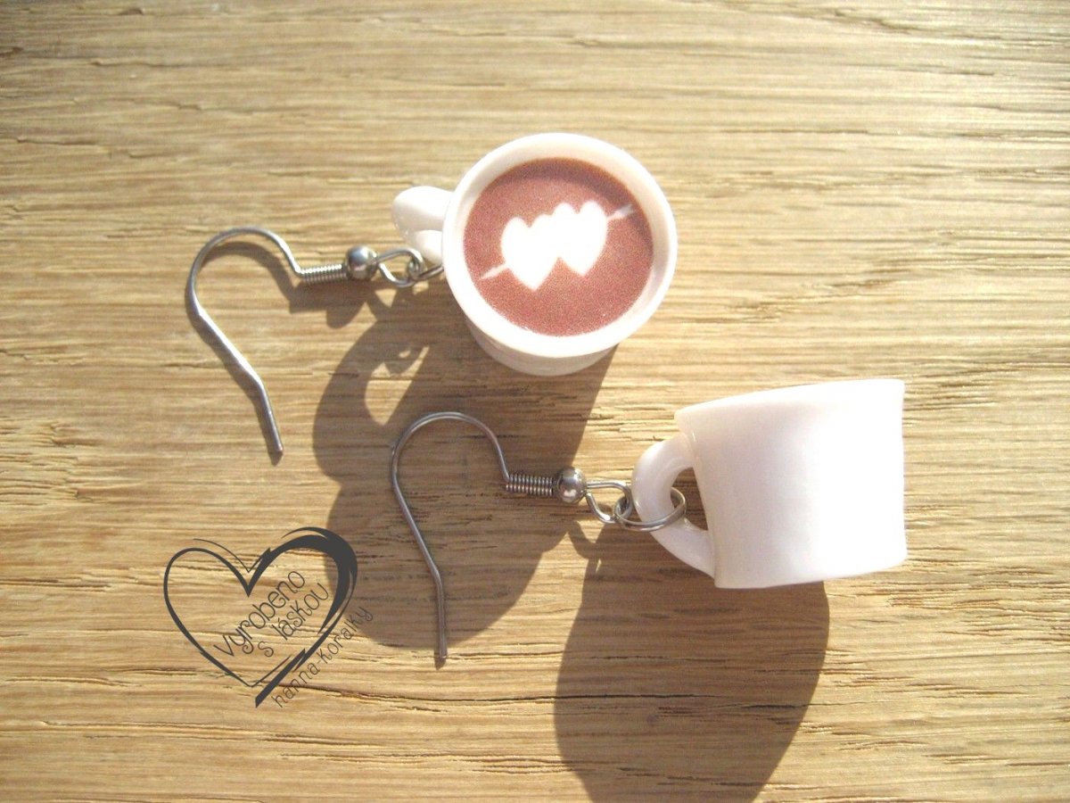 Veselé, hravé náušnice z pryskyřice - bílý šálek cappuccina v 5 variantách - velikost motivu - průměr hrníčku 1,7cm s ouškem 0,5cm + očko a náušnicový háček z nerez oceli, uvedená cena za 1 pár náušnic, do poznámky uveďte vybranou variantu