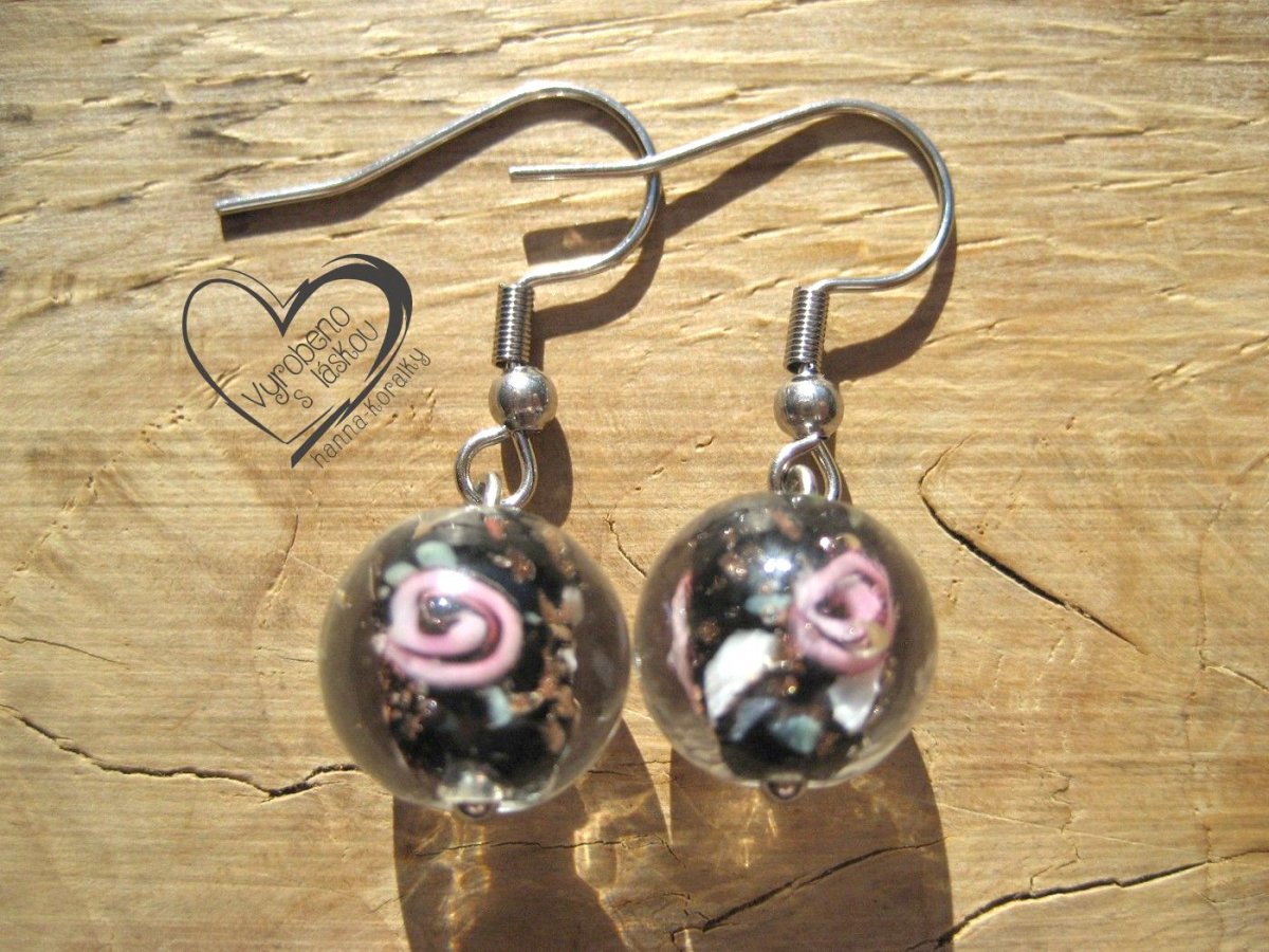 Náušnice z vinutek - vinutých perel, kuličky v kombinaci barev růžové, černé, bílé čiré, průměr 1,2cm, nýt i naušnicový háček z nerez oceli