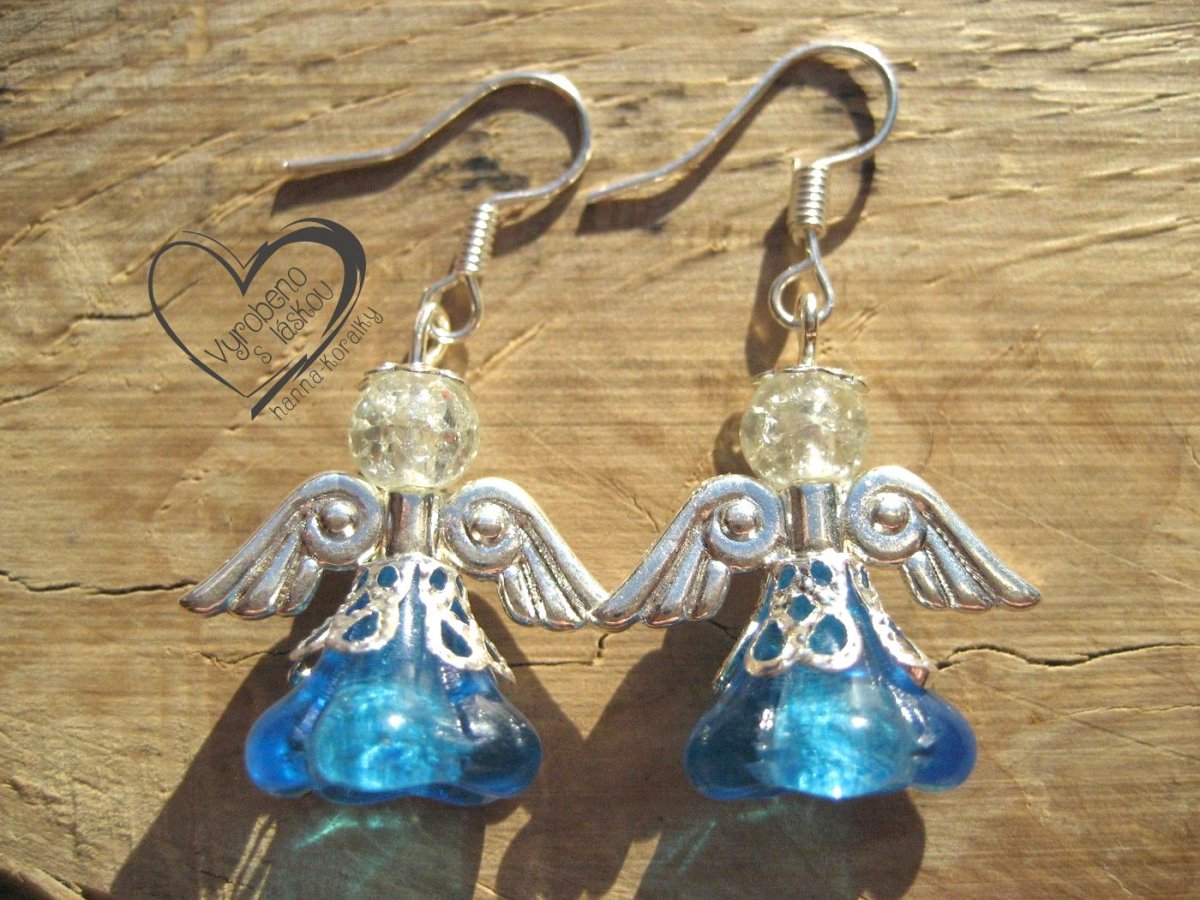 Andělské náušnice - andílci - andělíčci v kombinaci korálku v barvě - tyrkysové, čiré a stříbrných bižuterních komponentů, délka 2,5 cm + náušnicový háček