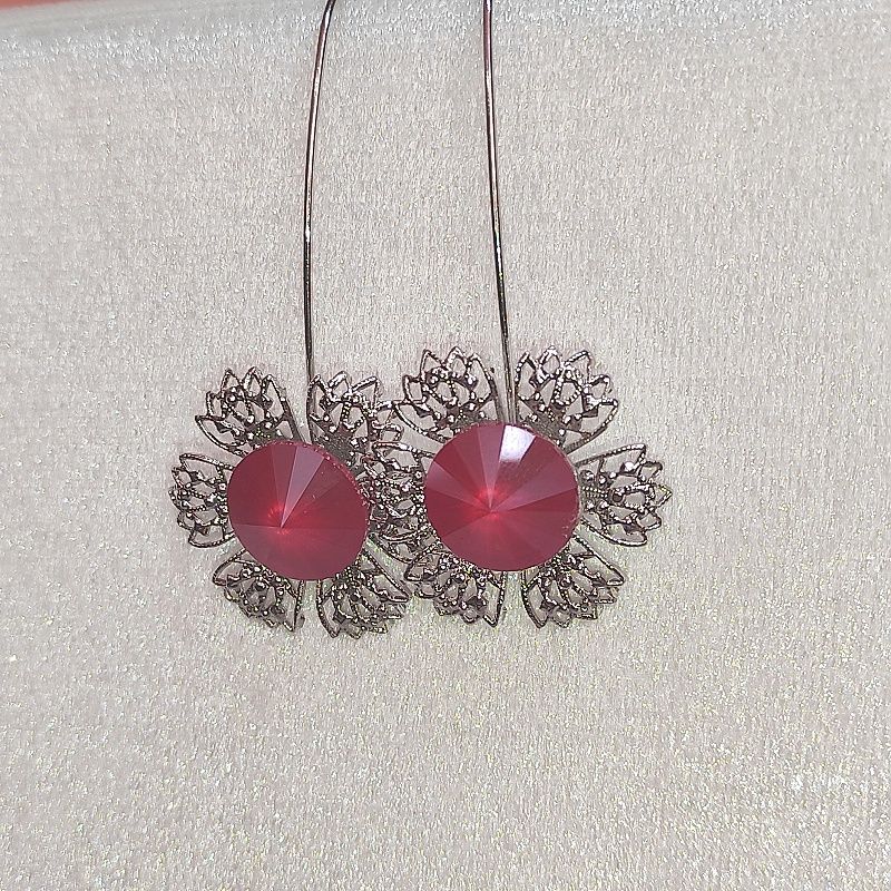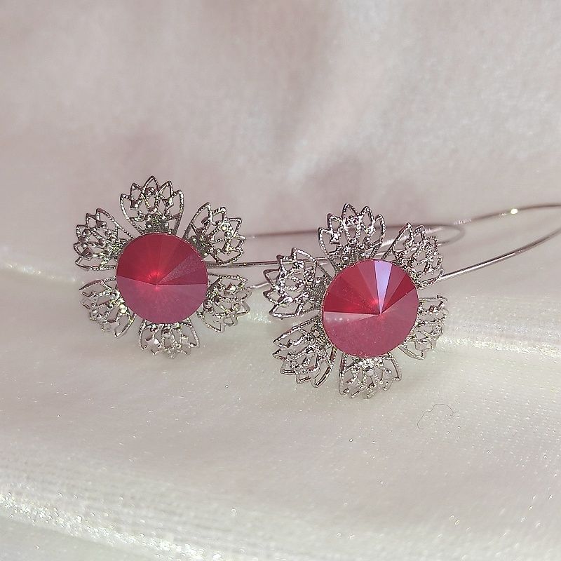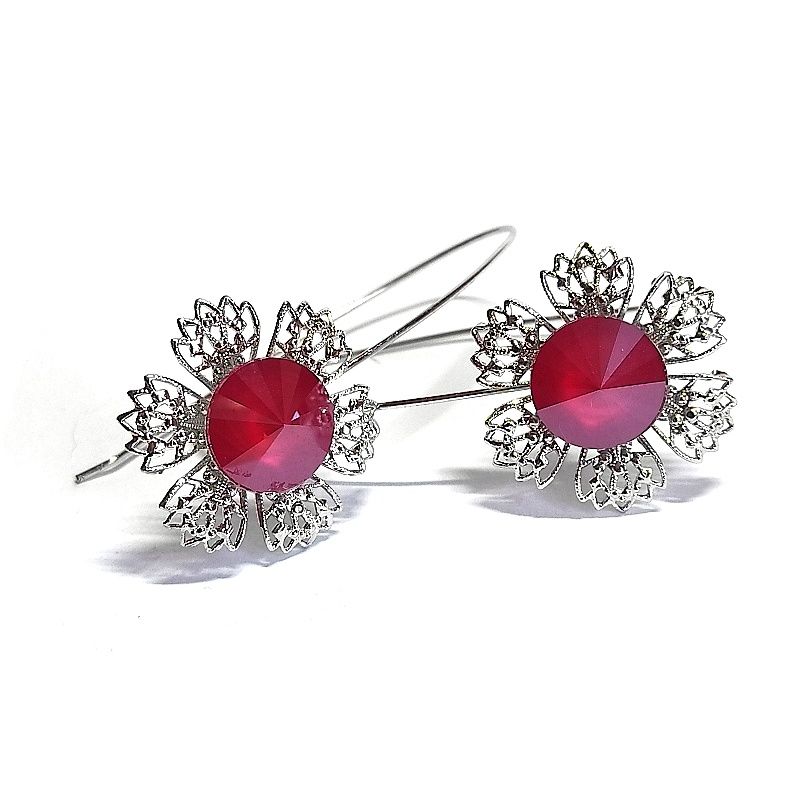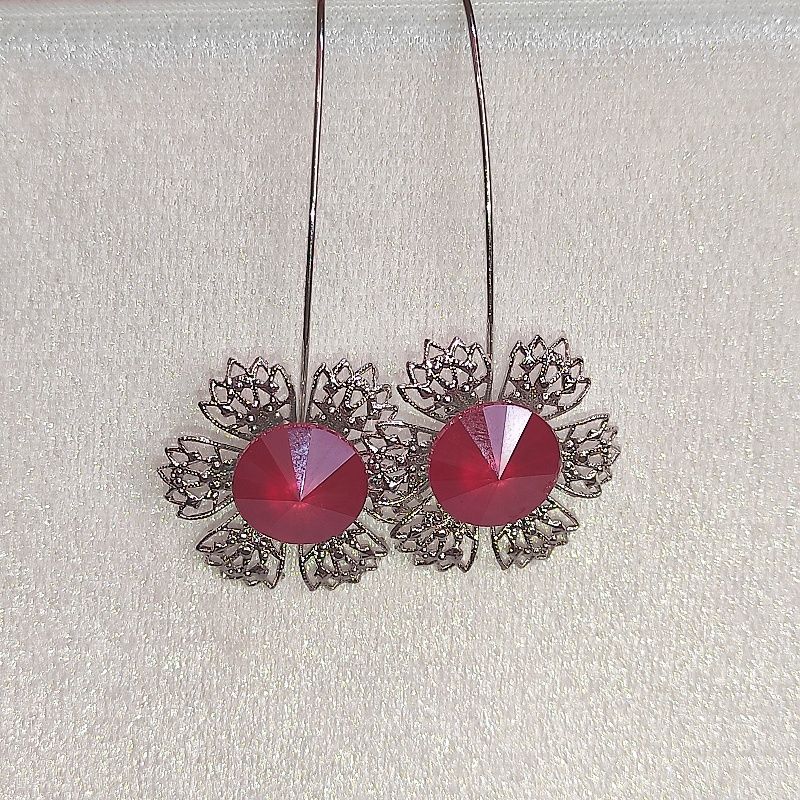 Minimalistický design, filigránový styl, nechává vyniknout brilanci broušených skleněných kamenů Swarovski Components, které nádherně odrážejí světlo při každém pohybu. Náušnice působí lehce a vzdušně – protože je navrhla sama víla.
