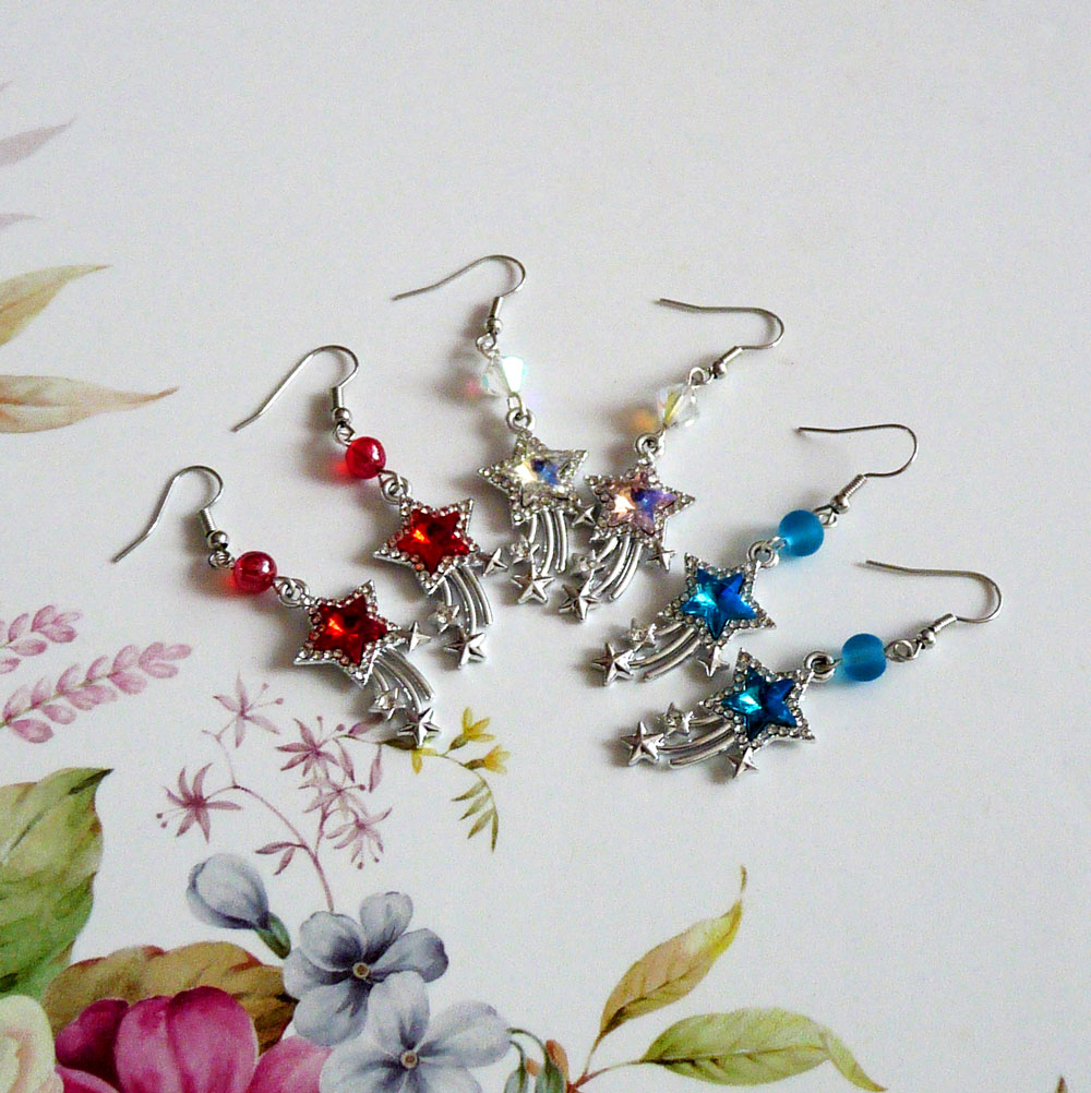 Podobné náušnice ještě v modré a duhové barvě