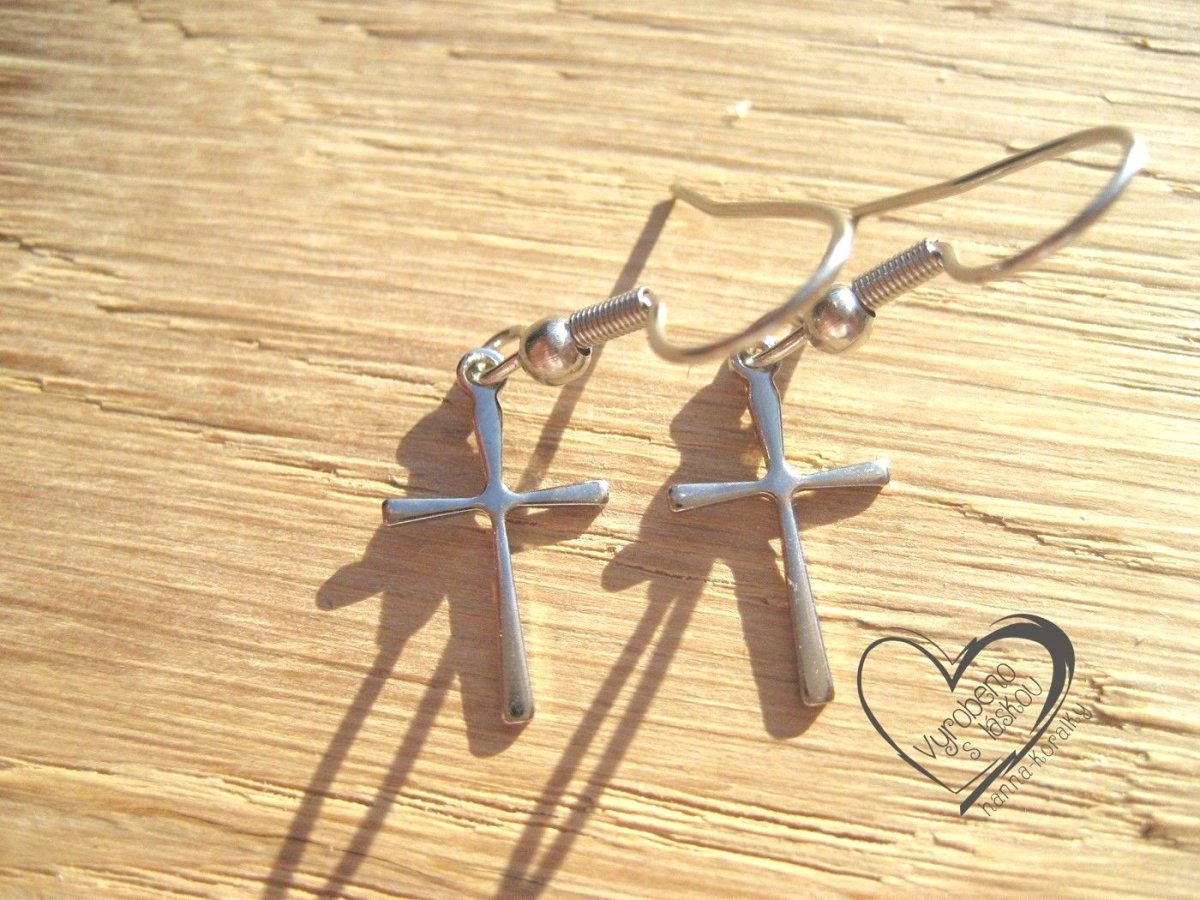 Jemné náušnice z nerez oceli - křížek - křížky - velikost motivu 1,5 x 1cm + náušnicový háček z oceli