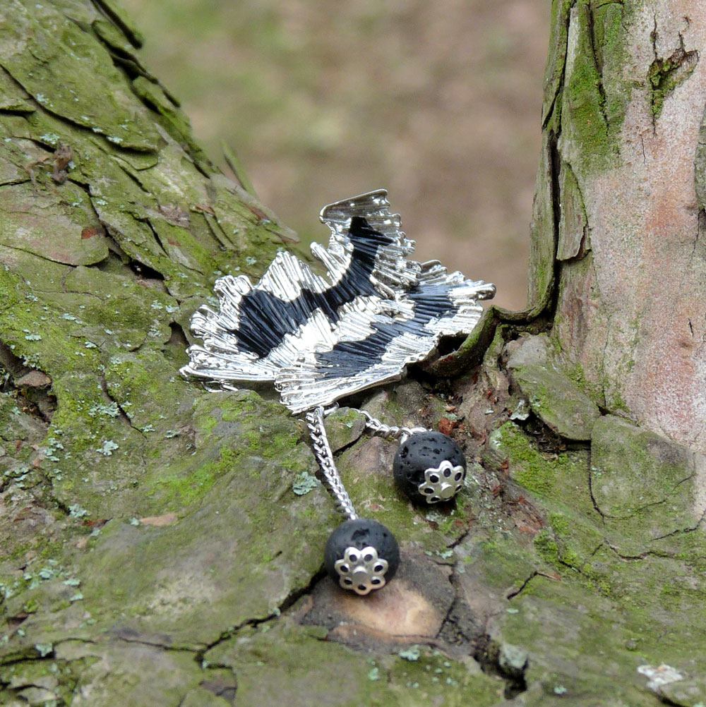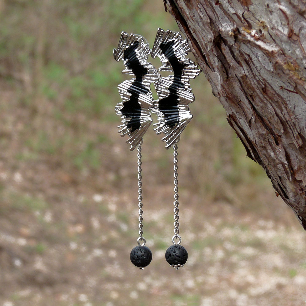 Jsou tvořeny dlouhým zvlněným komponentem ve stříbrné barvě s černou čmouhou uprostřed, který nese jemný řetízek s lávovou kuličkou