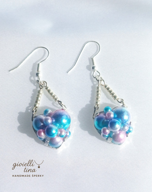 Tyto originální a hravé náušnice ve stříbrném provedení připomínají bubliny z mořské pěny. Jsou tvořeny mnoha malými perličkami v různých velikostech a odstínech světle modré, tyrkysové a růžové, které jsou poskládané do tvaru srdce. Barvy se mezi sebou prolínají a mají kovový lesk, který vytváří dojem duhových bublin. Náušnice jsou zavěšené na stříbrném háčku s ozdobným prvkem na řetízku. Jsou ideálním doplňkem pro ty, kteří milují jemné a neobvyklé šperky.
