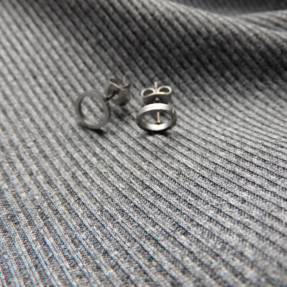 Naušnice kroužky z nerezu , navlečené malé hematitové srdíčko....
