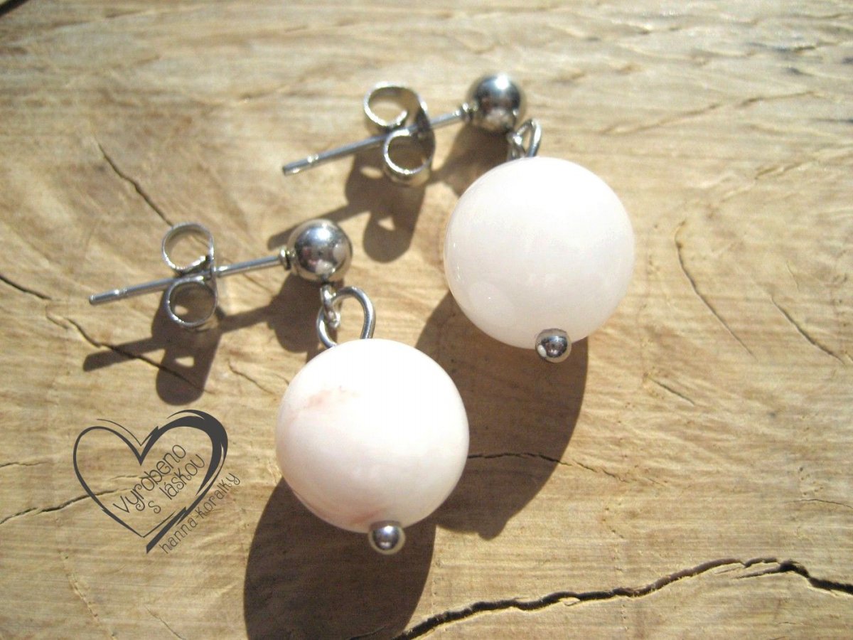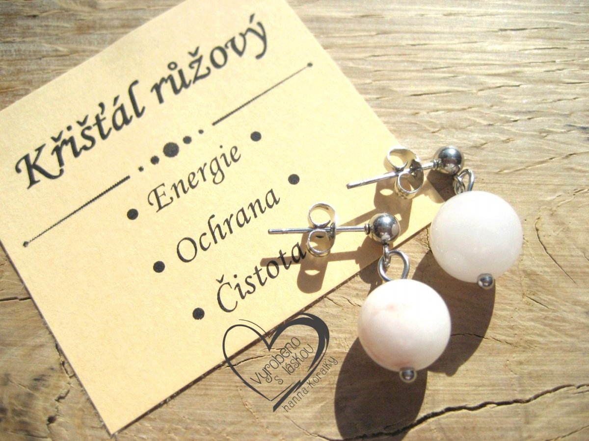 Náušnice puzety z nerez oceli s minerálem - Křišťál růžový - velikost minerálního korálku 1cm