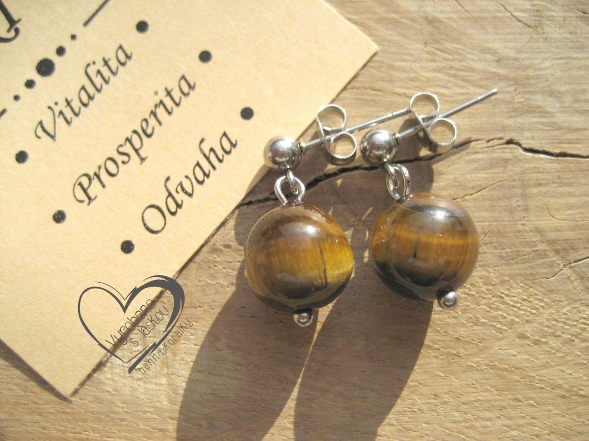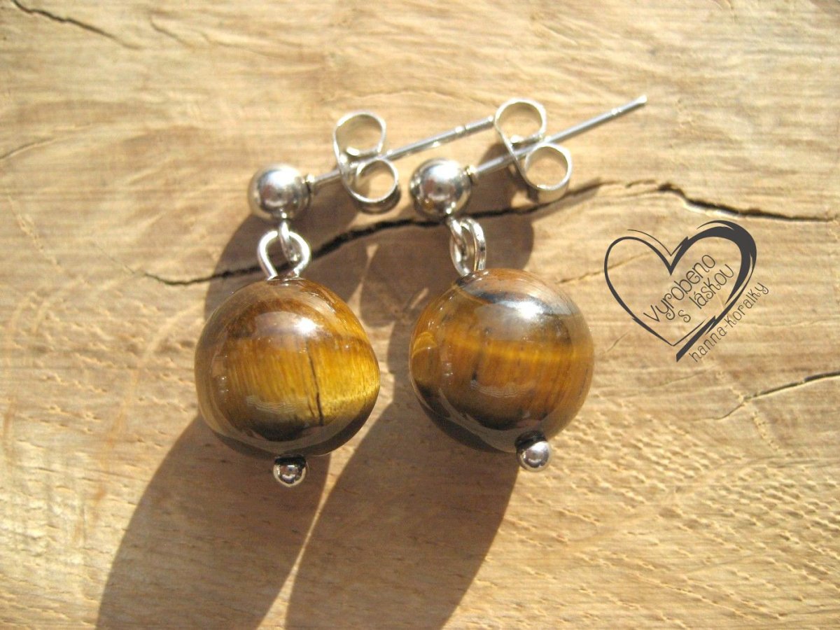 Náušnice puzety z nerez oceli s minerálem - Tygří oko - velikost minerálního korálku 1cm
