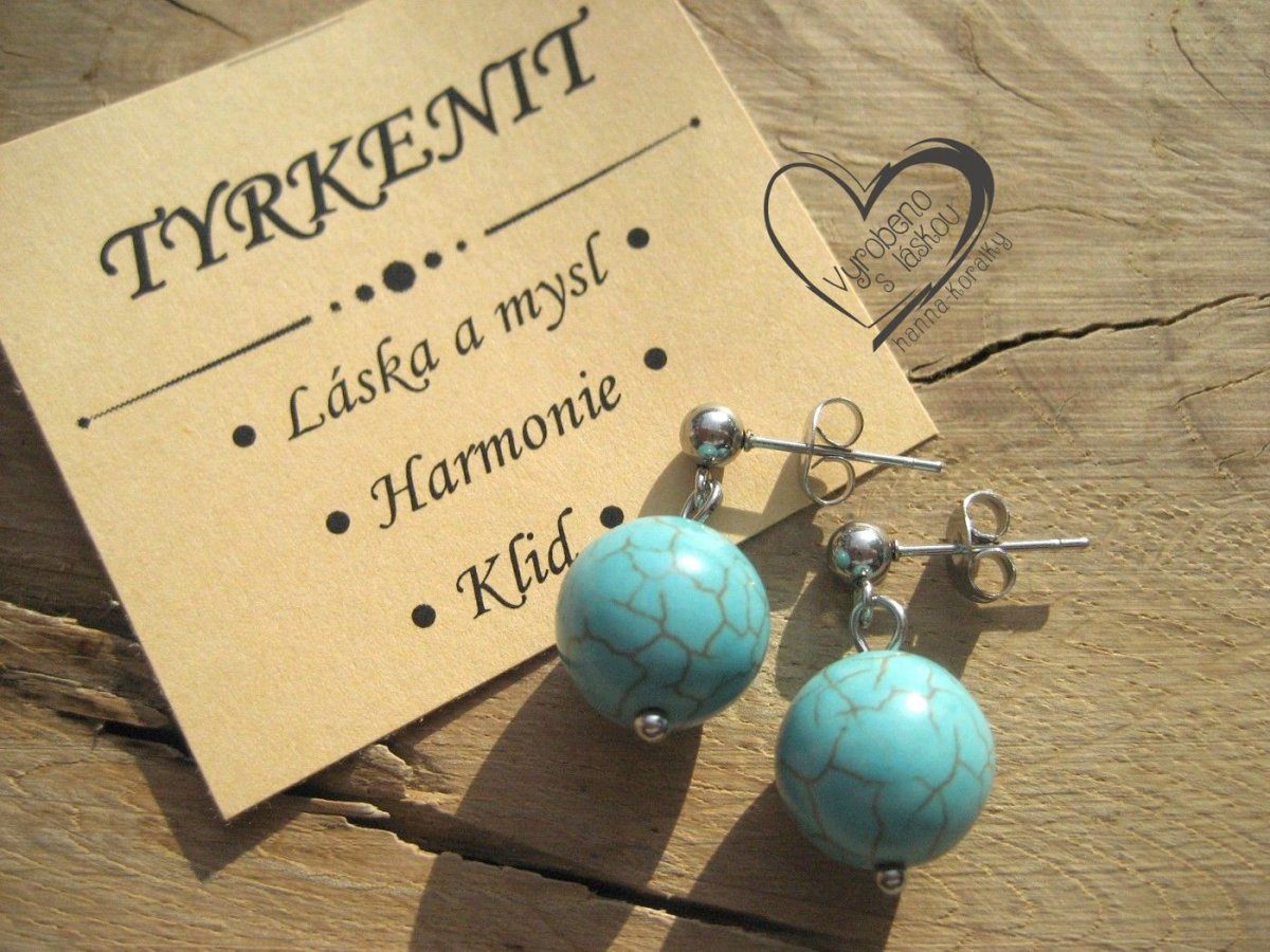 Náušnice puzety z nerez oceli s minerálem - Tyrkenit - velikost minerálního korálku 1,2 cm