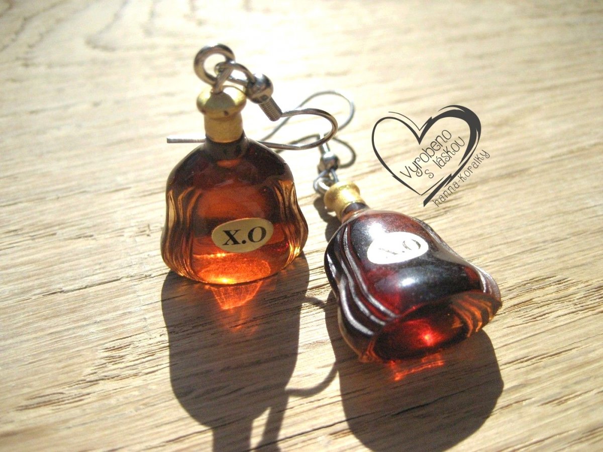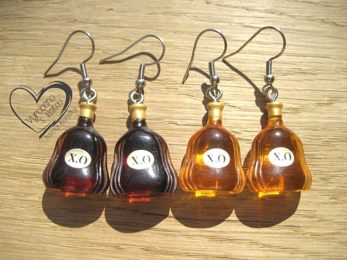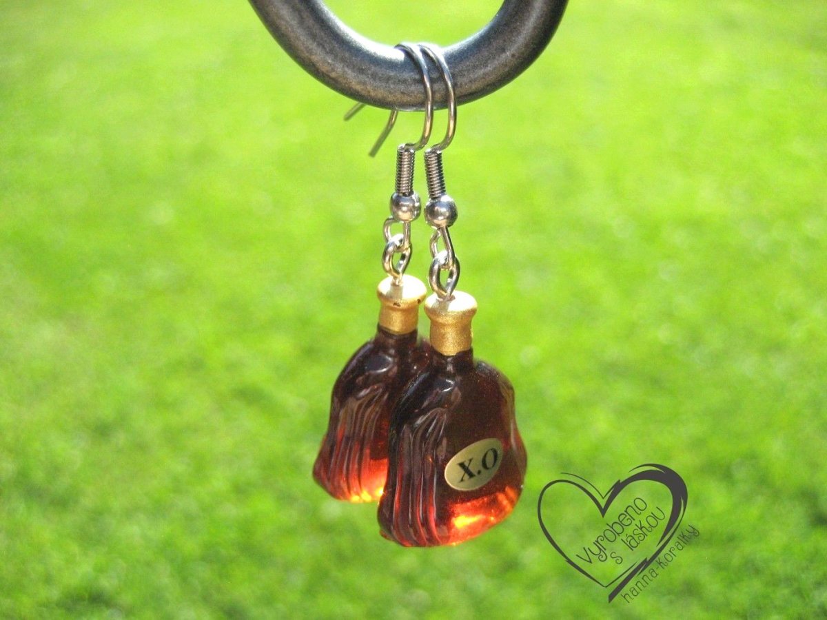 Alkoholové náušnice z pryskyřice - mini láhev rumu - výška motivu 2,5cm + naušnicový háček z nerez oceli, uvedená cena za 1 pár náušnic