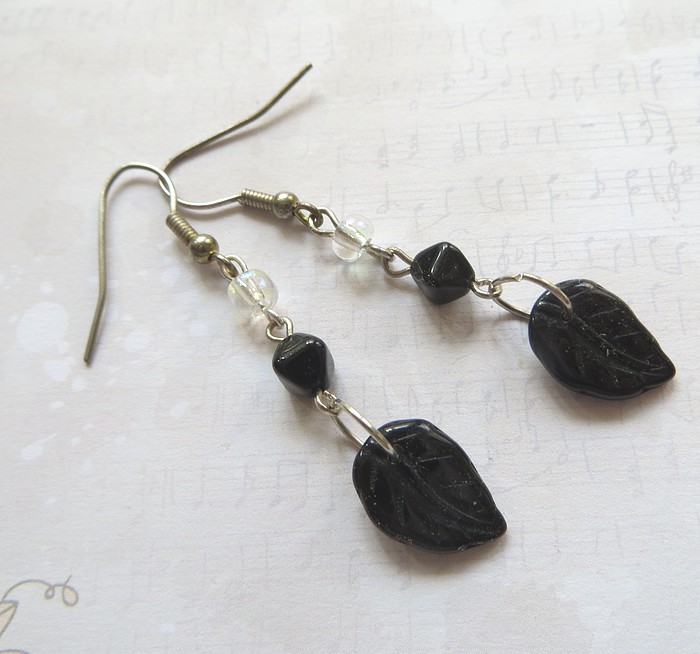 Náušnice vyrobené ze skleněných korálků a komponentů z bižuterního kovu. Délka náušnic bez háčku je 3,5 cm.