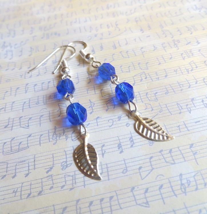 Náušnice vyrobené ze skleněných broušených korálků - ohňovek - a komponentů z bižuterního kovu. Délka náušnic bez háčku je 3,5 cm.