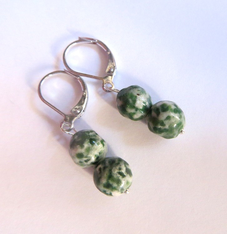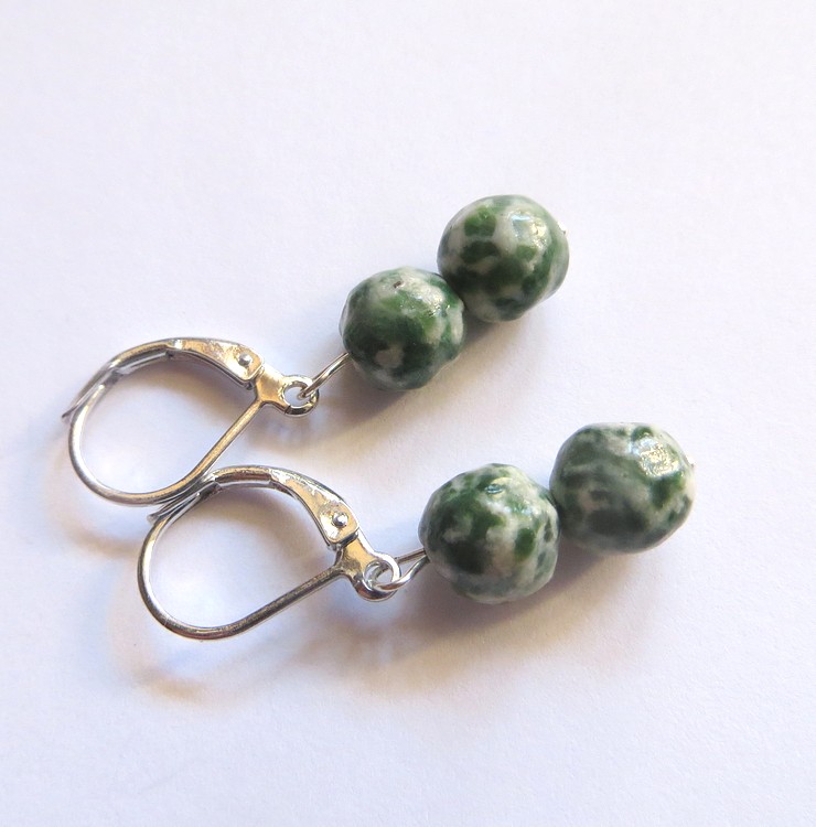 Náušnice vyrobené z kuliček mechového achátu velikost 7 mm, háčky jsou z nerezové oceli. Vhodné pro alergiky.