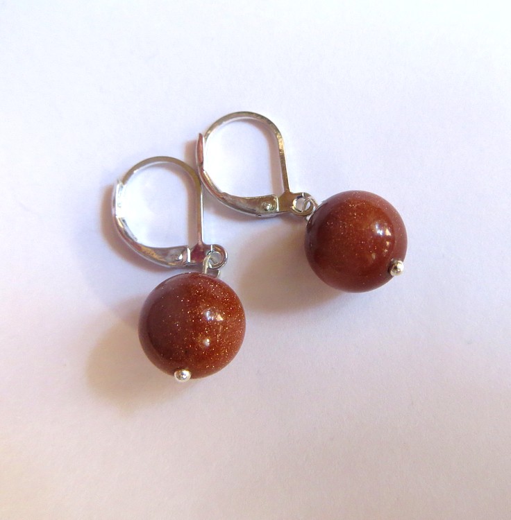 Náušnice vyrobené z kuliček zlatého avanturinu velikost 1 cm, háčky jsou z nerezové oceli. Vhodné pro alergiky.