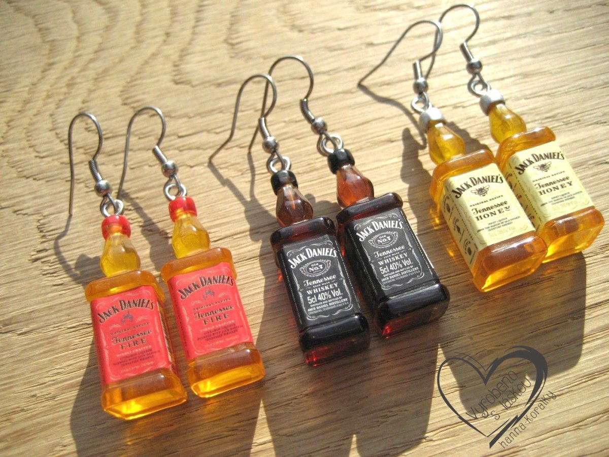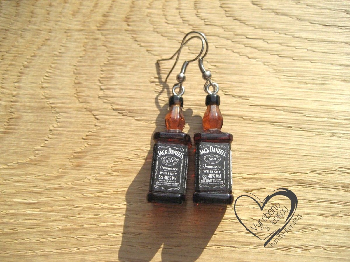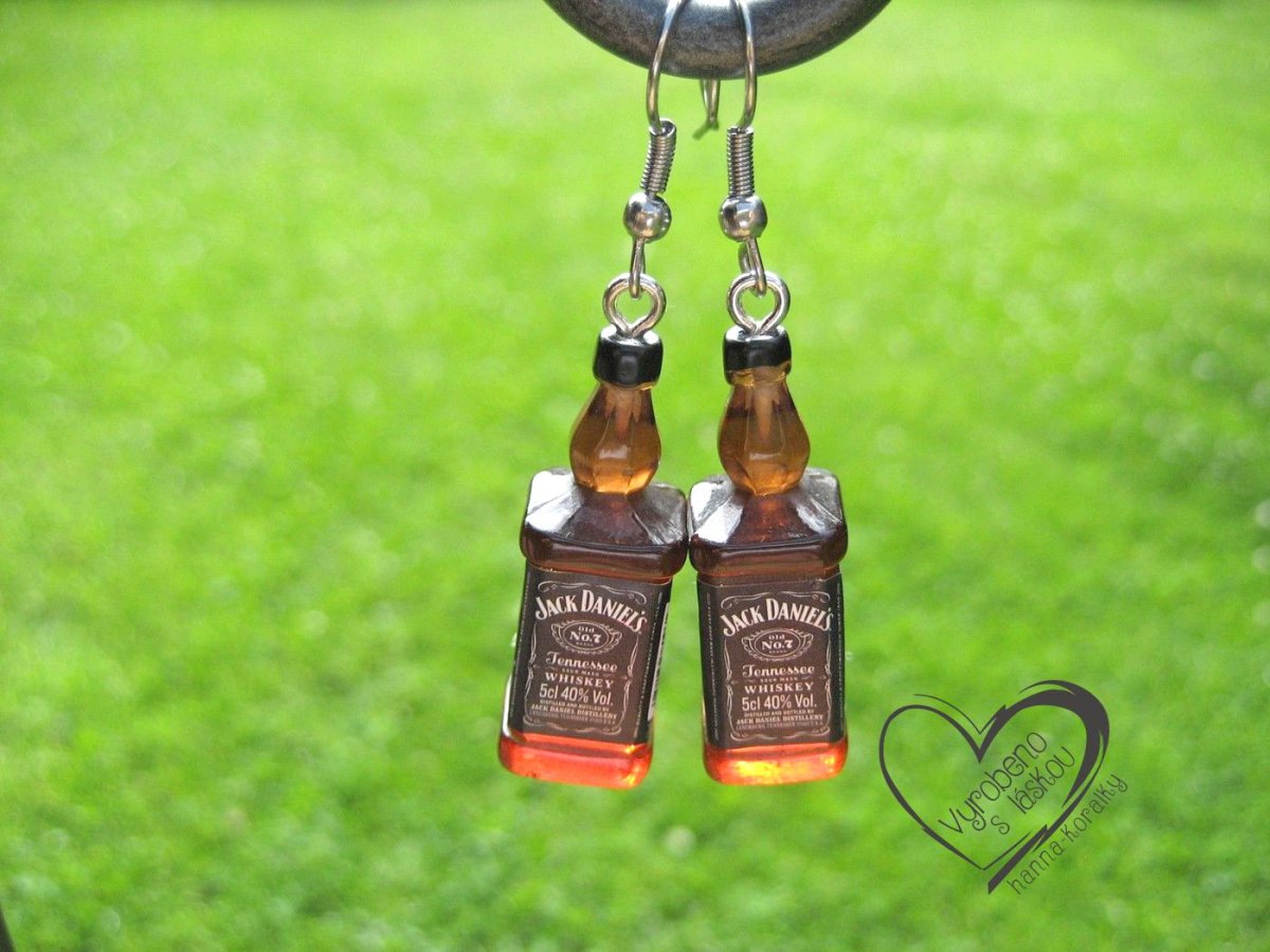 Vtipné náušnice z pryskyřice - mini láhev - alkohol - whisky - výška motivu 3,3 cm + naušnicový háček z nerez oceli, uvedená cena za 1 pár náušnic