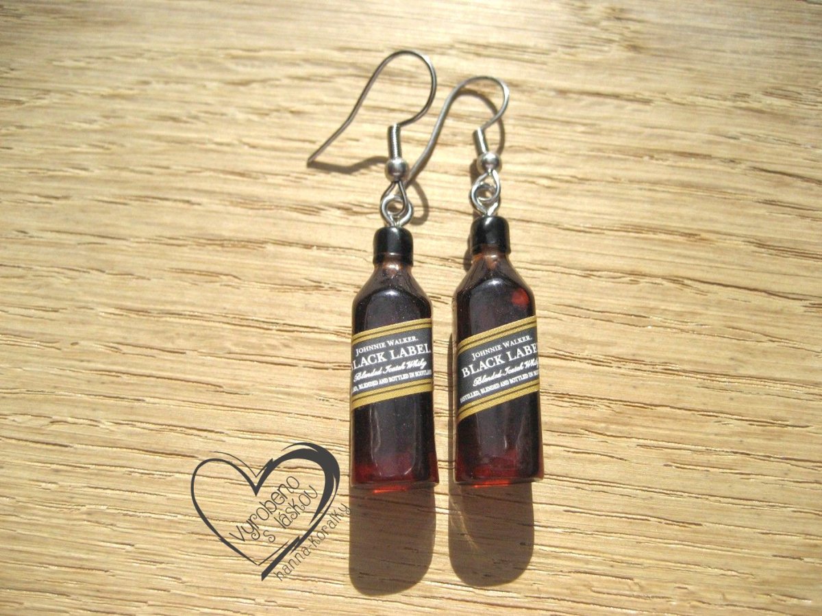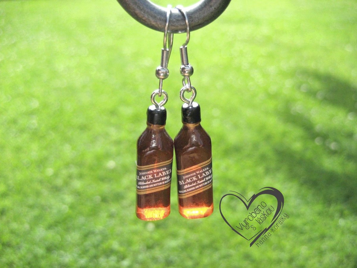 Vtipné náušnice z pryskyřice - mini láhev akohol - whisky - výška motivu bez očka 3 cm + naušnicový háček z nerez oceli