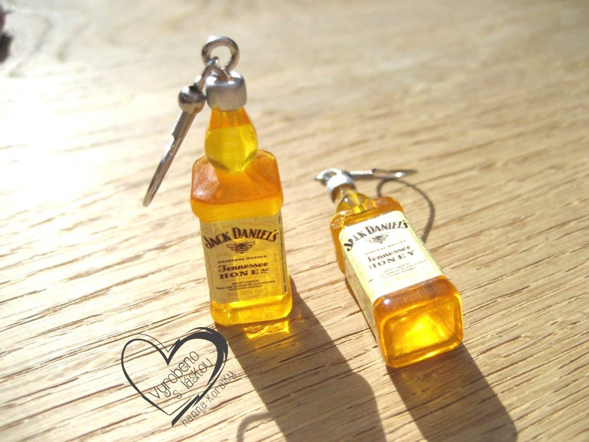 Vtipné náušnice z pryskyřice - mini láhev akohol - whisky - výška motivu 3,3 cm + naušnicový háček z nerez oceli, uvedená cena za 1 pár náušnic