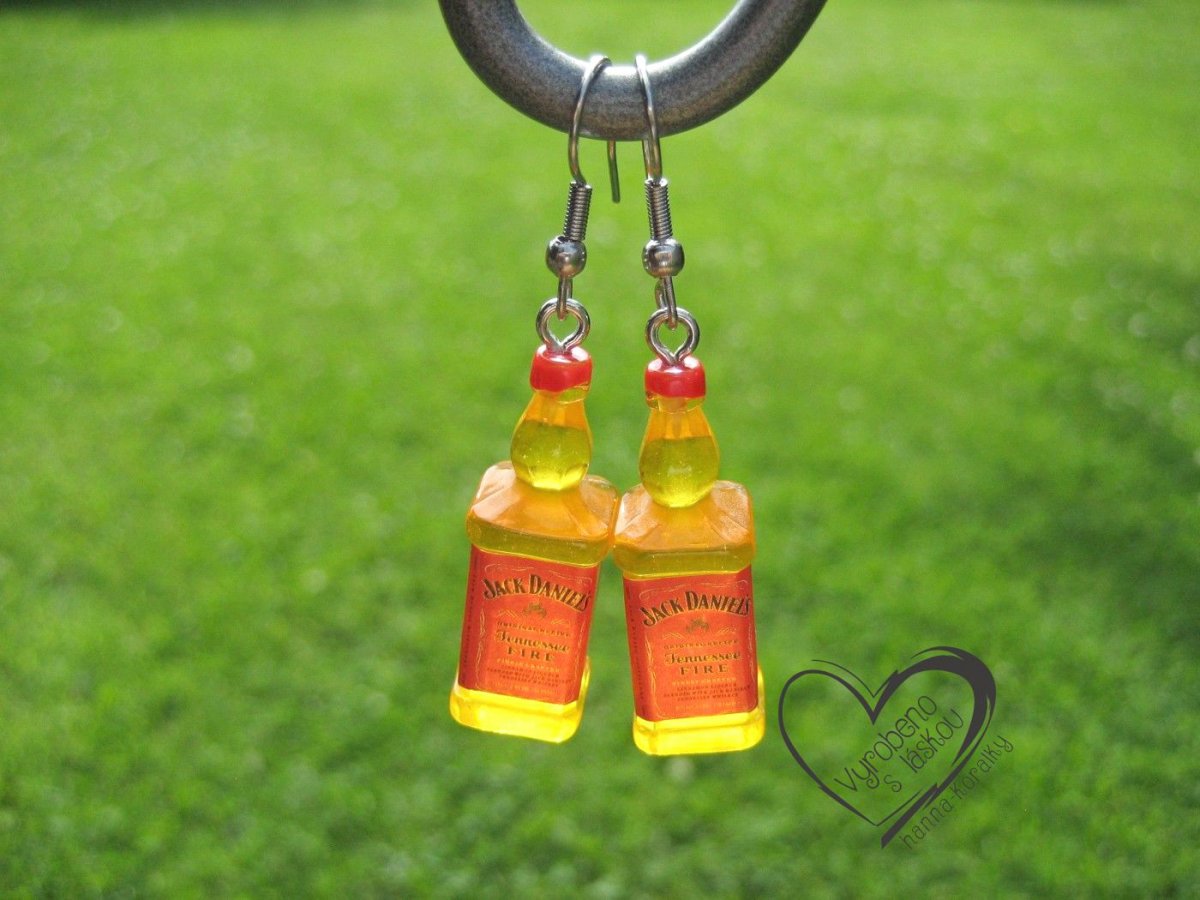 Vtipné náušnice z pryskyřice - mini láhev akohol - whisky - výška motivu 3,3 cm + naušnicový háček z nerez oceli, uvedená cena za 1 pár náušnic