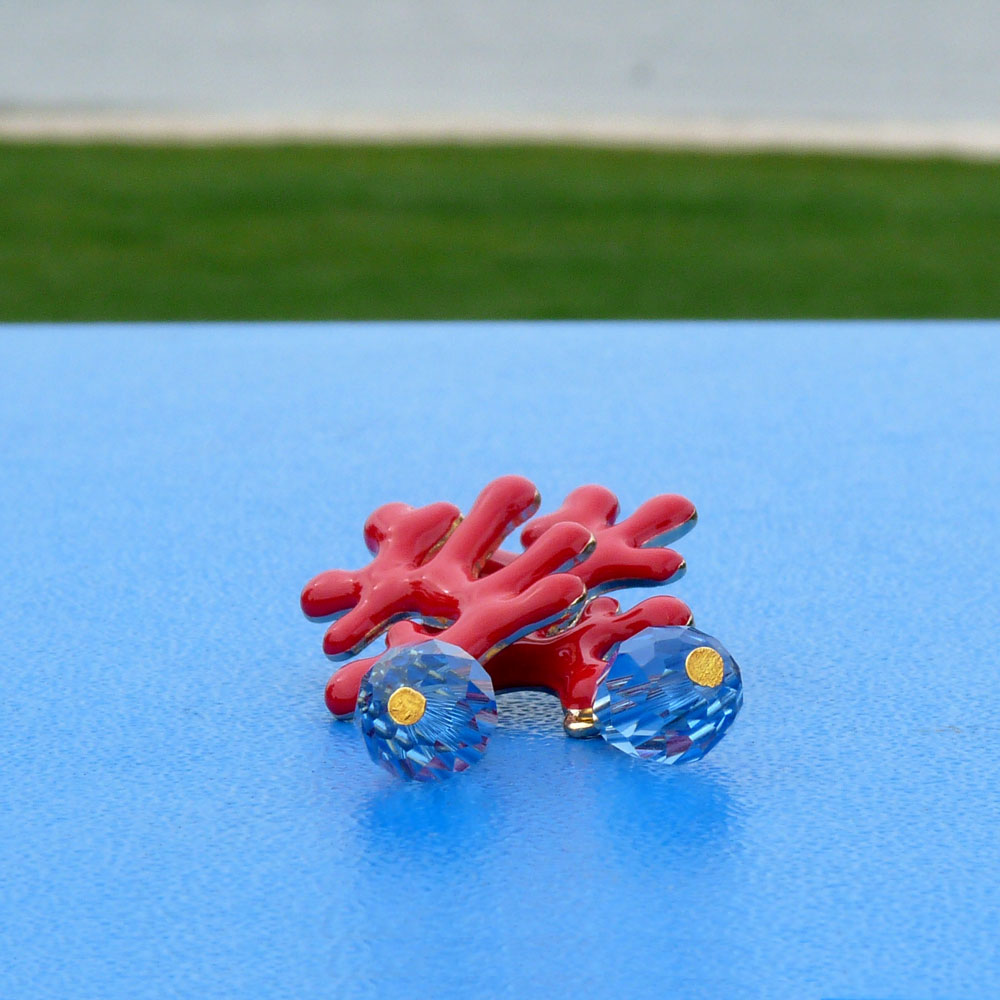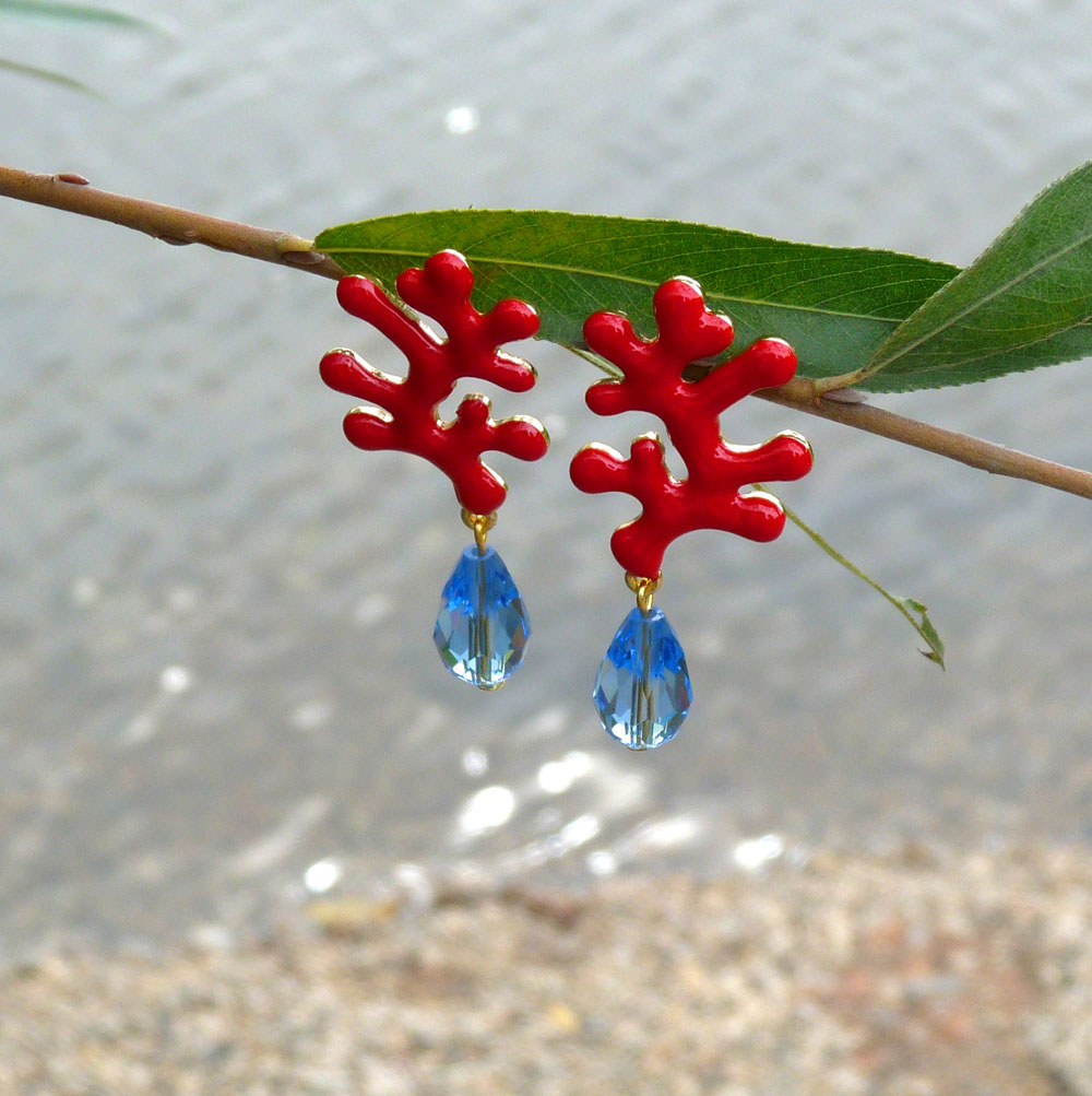 Náušnice s větší větvičkou mořského korálu a kapkou vody