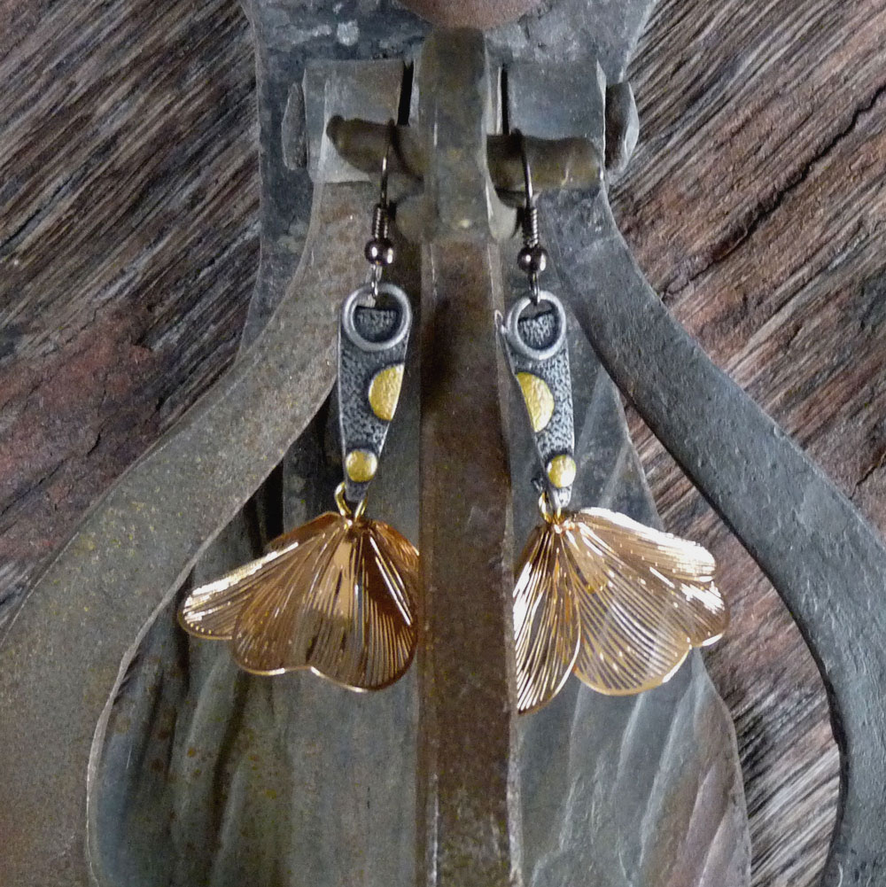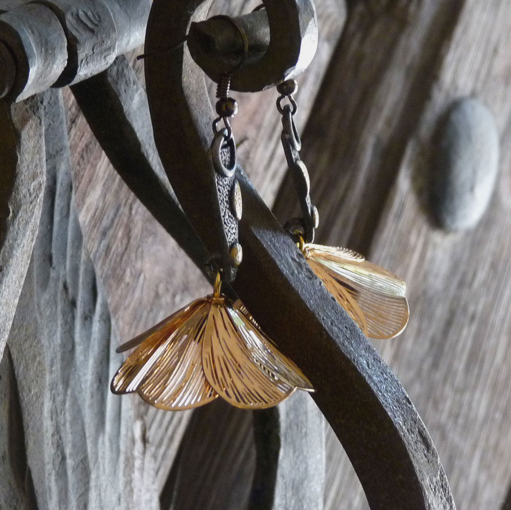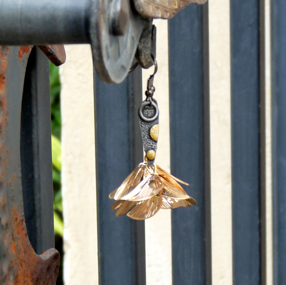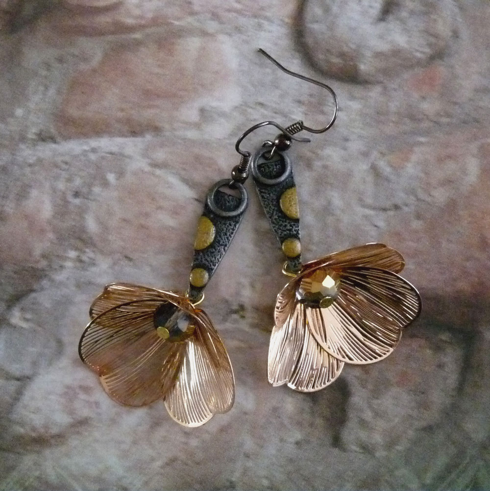 tvořené velkým květem ve zlaté barvě jemně síťovaným s broušenou pokovanou ohňovkou v kouřovozlaté barvě