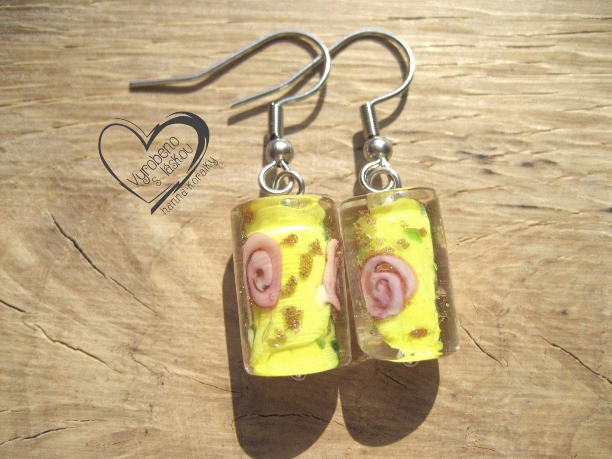 Náušnice z vinutek - vinutých perel, ve tvaru válečku ve žluté barvě, délka vinutky 1,5cm, nýt i naušnicový háček z nerez oceli
