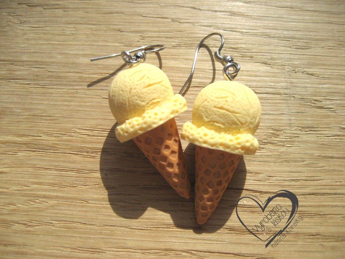 Veselé, hravé, větší náušnice z pryskyřice - zmrzka zmrzlina - vanilková, velikost motivu bez očka 1,5 x 3,5 cm + náušnicový háček z nerez oceli, v nabídce jsou i další příchutě :)