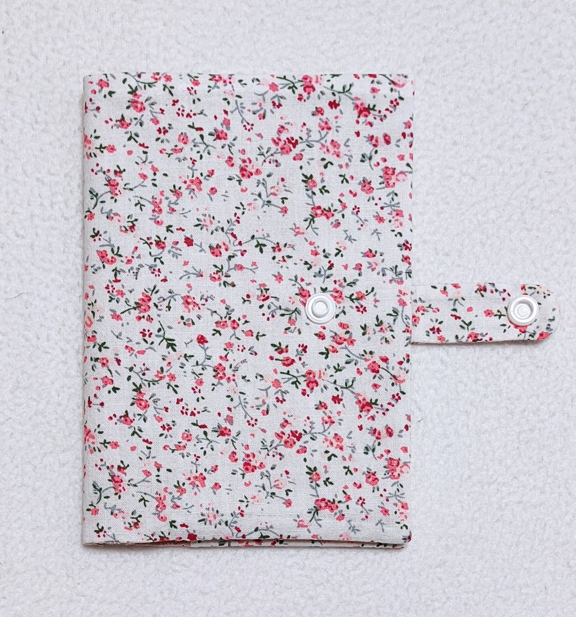 Obal o velikosti A6 je ušitý z bavlněných látek. Vnější strana je vyztužena vliselinem.