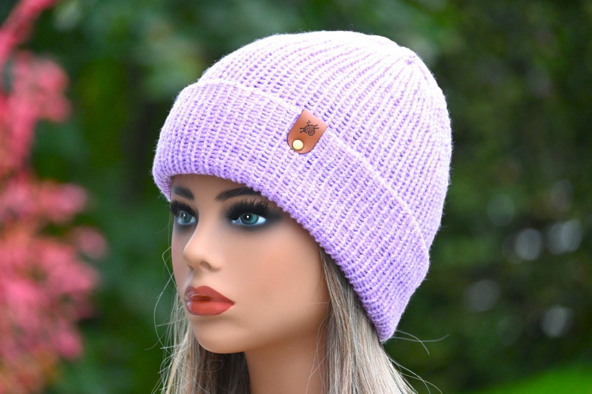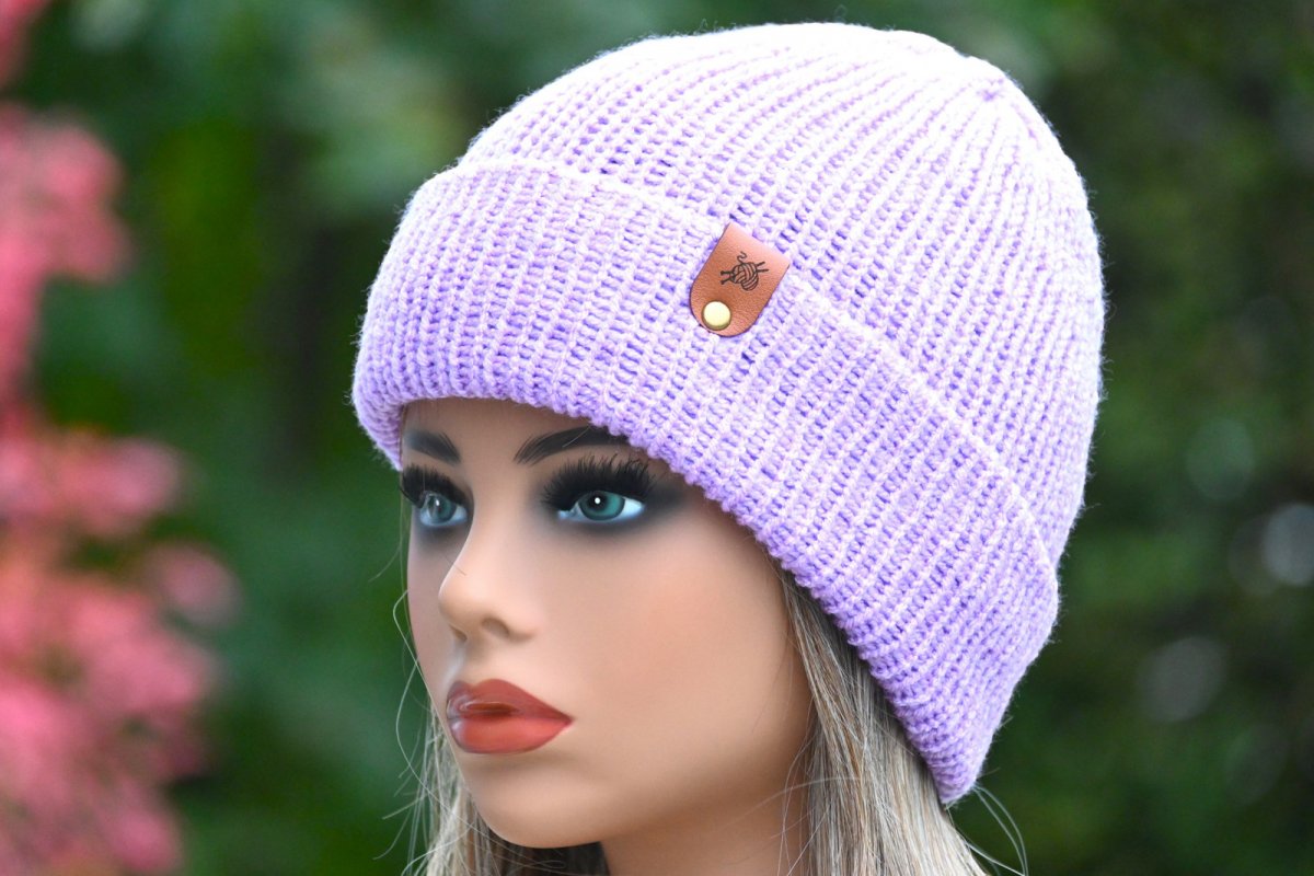 Pletená bezešvá čepice v UNI velikosti z velmi příjemné a jemné akrylové příze v barvě lila