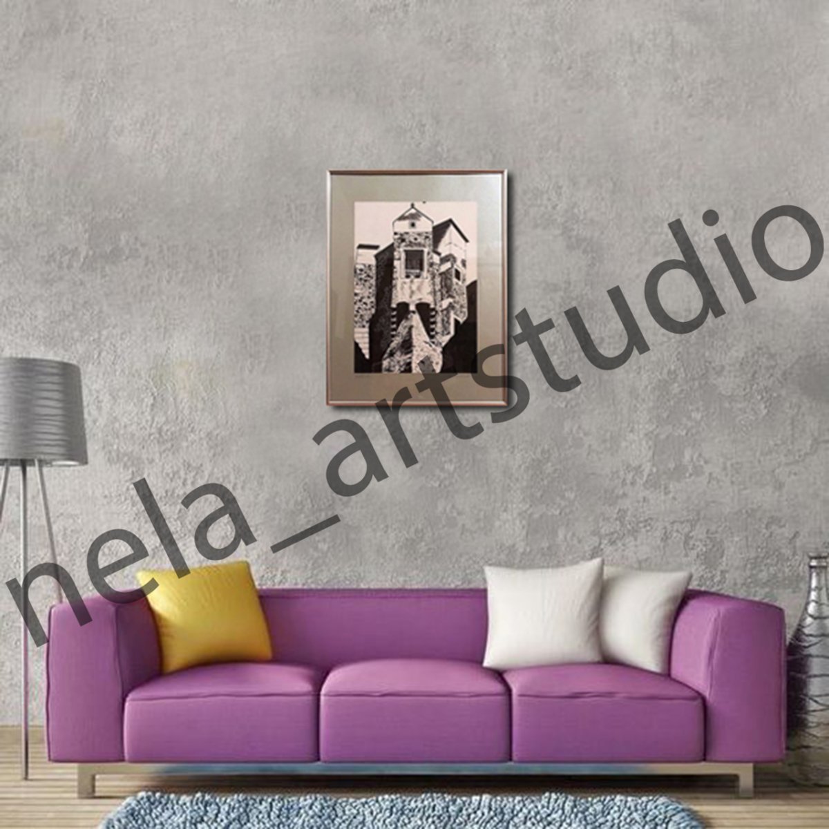Kresba tuší na papíře. Součástí je stříbrný rám. Rozměr 30 x 40 cm.