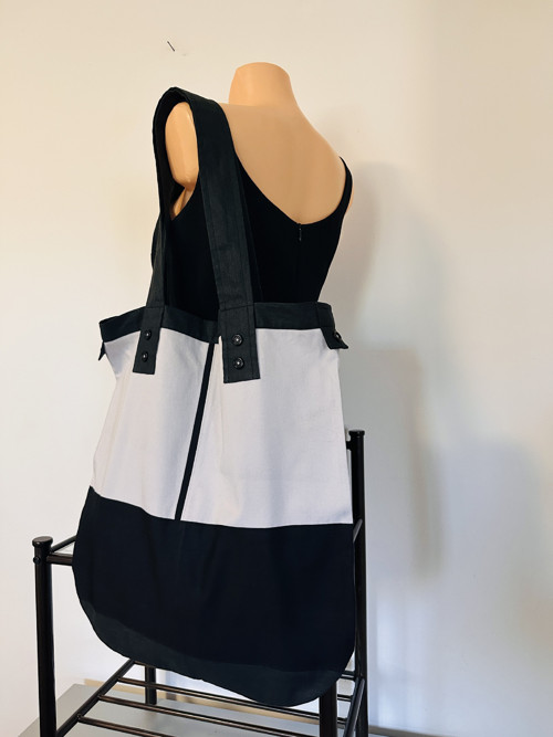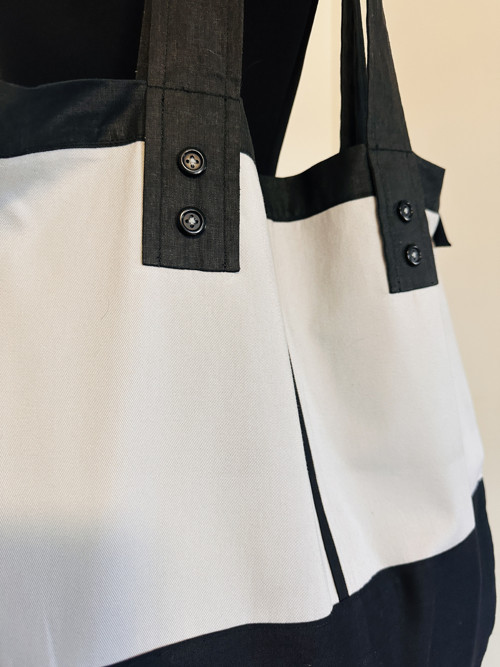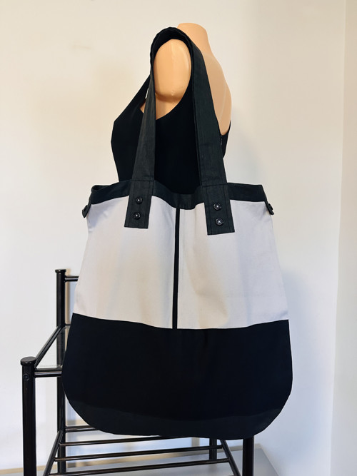 bavlna, zdobená knoflíky, délka od ramene do 80 cm, šíře 50 cm, délka 50 cm.