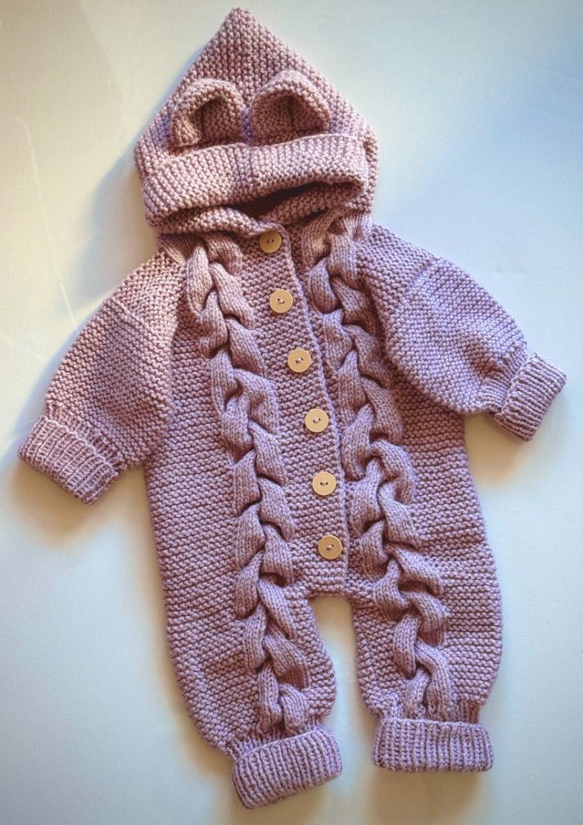 Staroružový teplý overal pro miminko 0-6m, pletený z teplejší akrylové příze