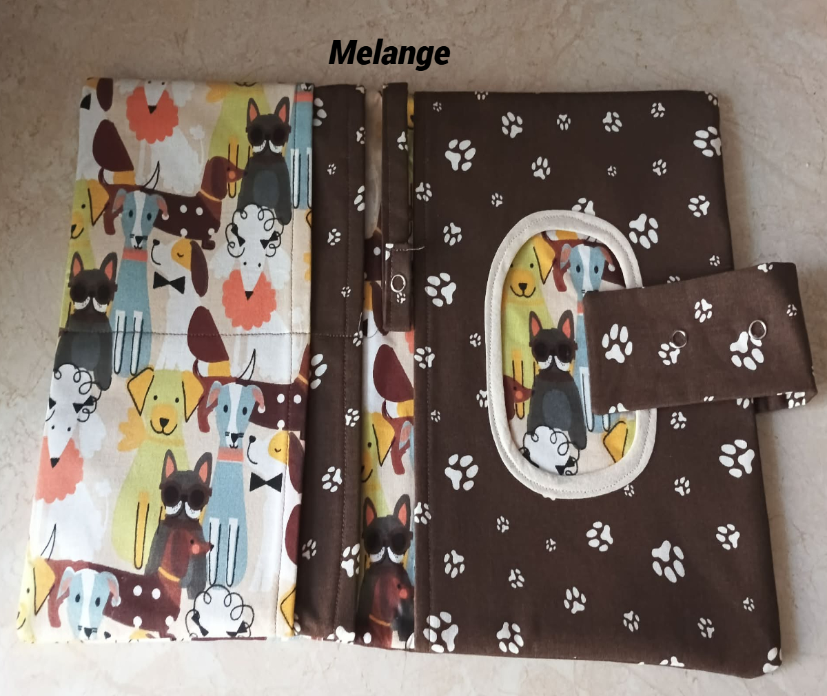 Je to velká kapsa podlepená,s kapsičkami na plenky,na vlhčené ubrousky,na krém a třeba i na mobil,poutko na dudlík nebo hračky.