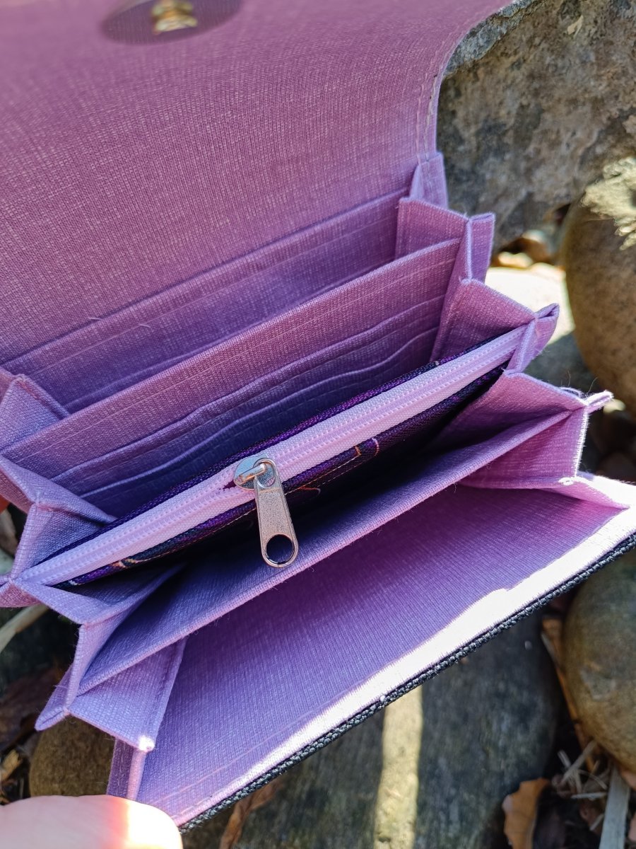 Vnitřní prostor je chytře rozdělený – najdeš tu dvě přepážky, zipovou kapsičku na drobné a zadní přepážku na karty.